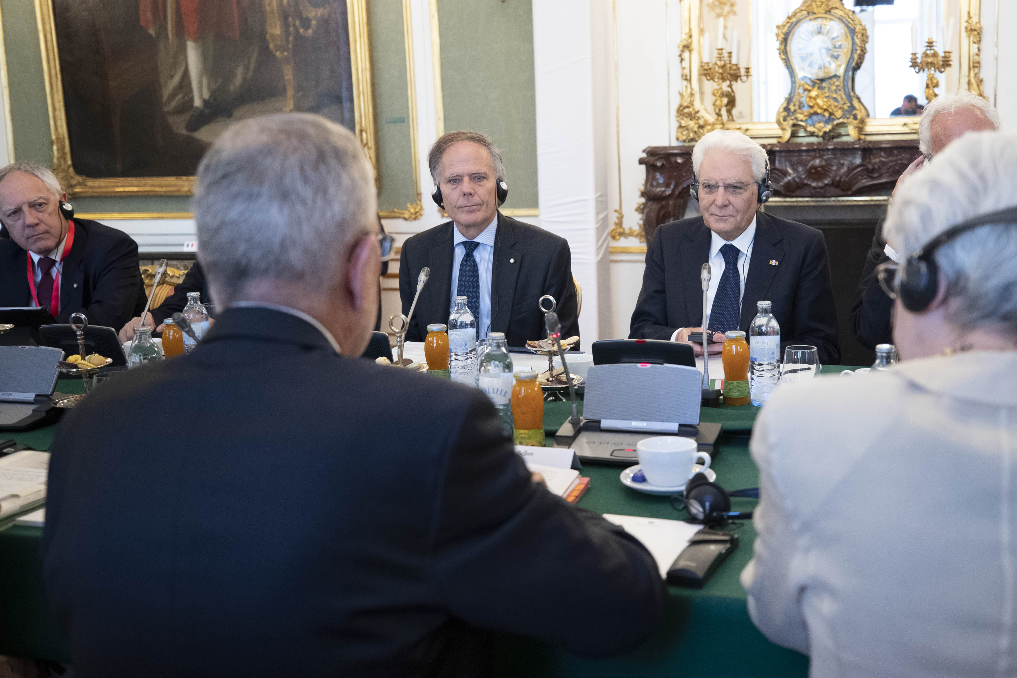 Il Presidente Sergio Mattarella con il Presidente Federale della Repubblica d'Austria Alexander Van der Bellen,durante i colloqui con le rispettive delegazioni, in occasione della visita di Stato nella Repubblica d'Austria