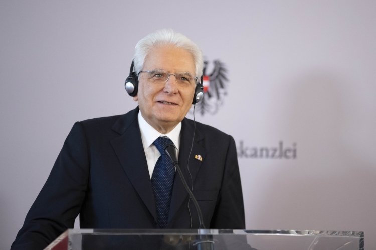 Il Presidente Sergio Mattarella durante le dichiarazioni alla stampa,in occasione della visita di Stato nella Repubblica d'Austria