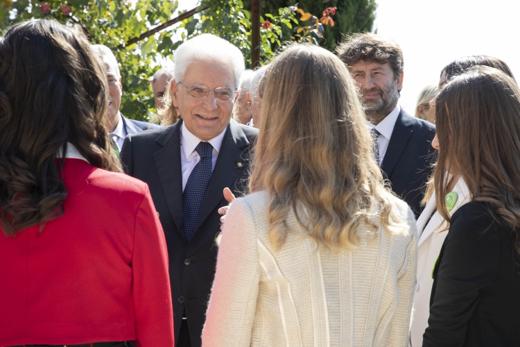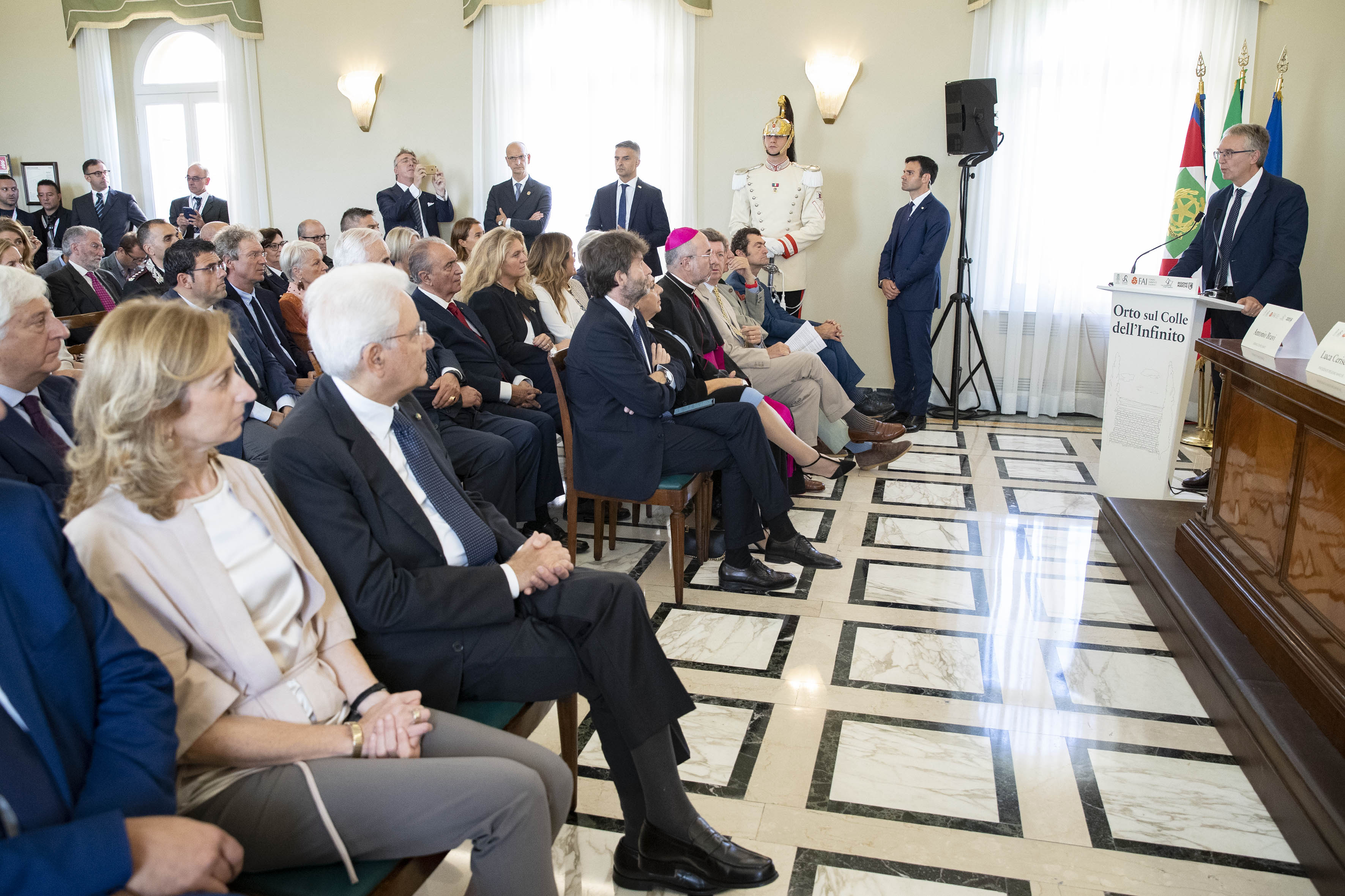 Il Presidente Sergio Mattarella nel corso della visita all’Orto sul Colle dell’Infinito