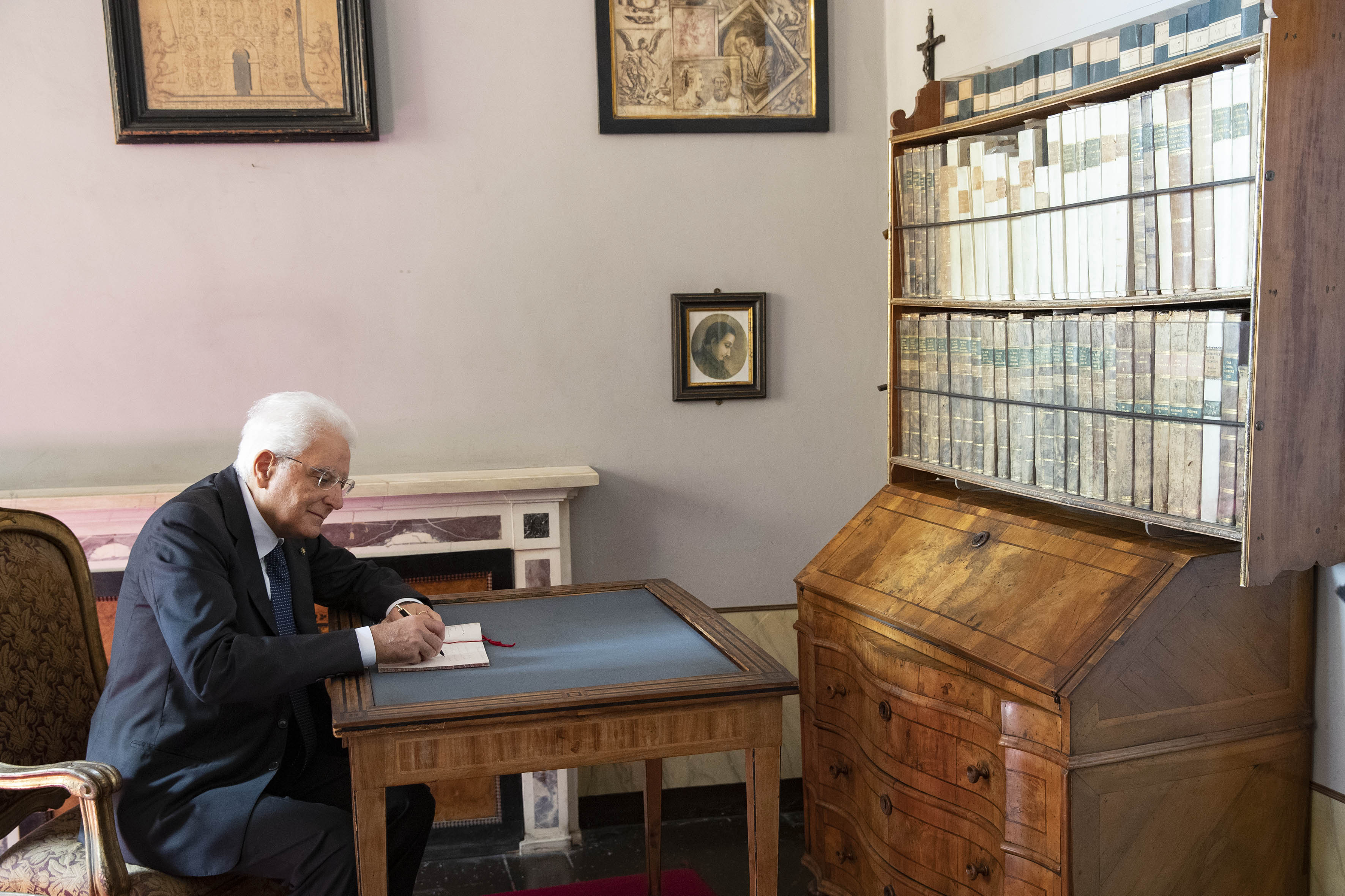 Il Presidente Sergio Mattarella nel corso della visita alla casa di Giacomo Leopardi