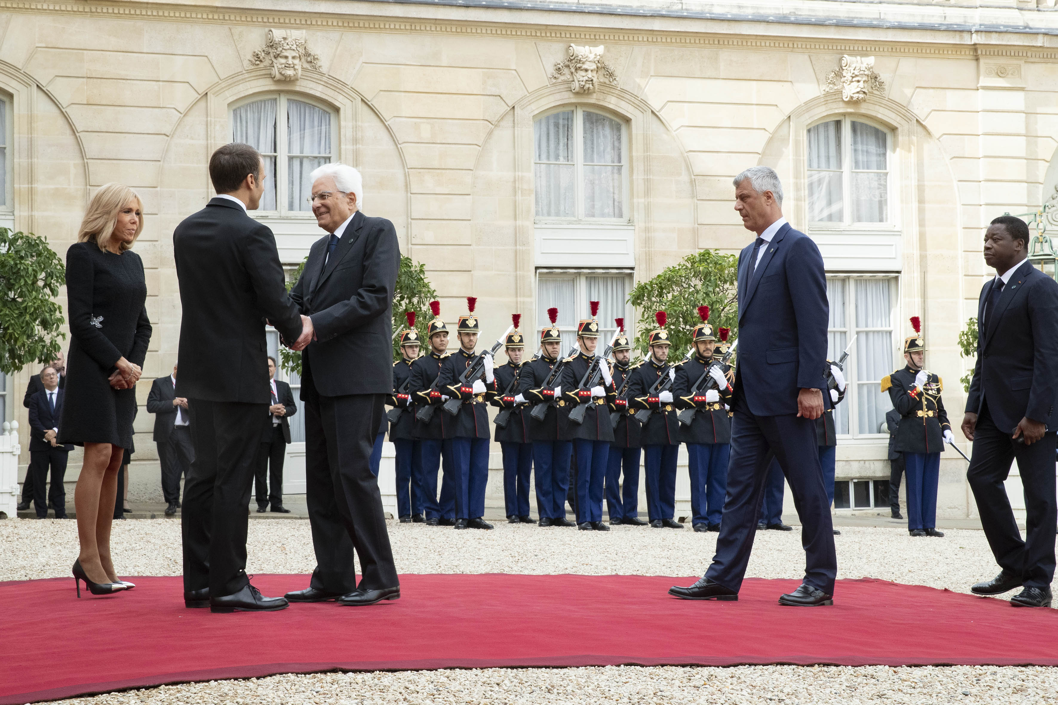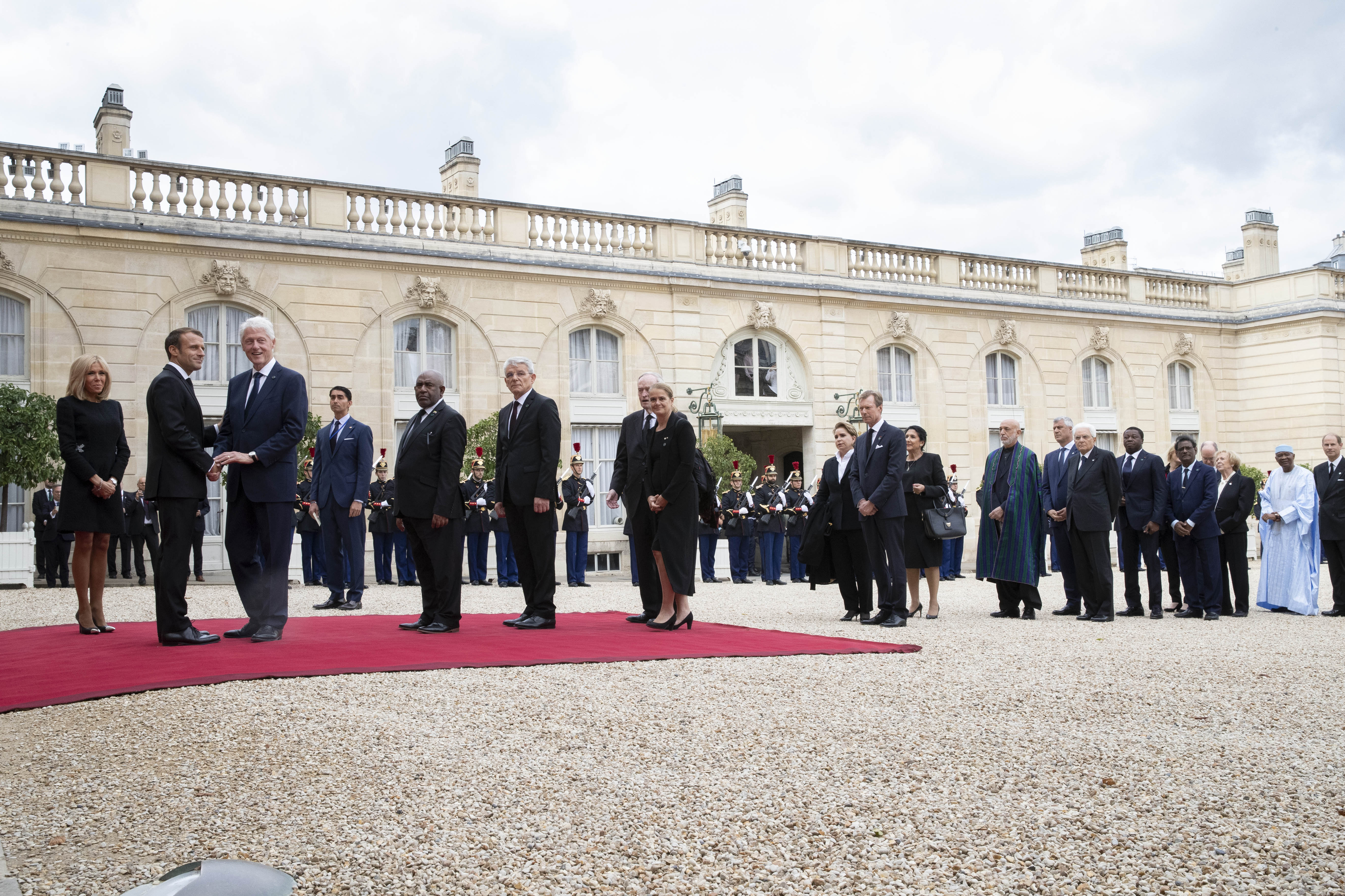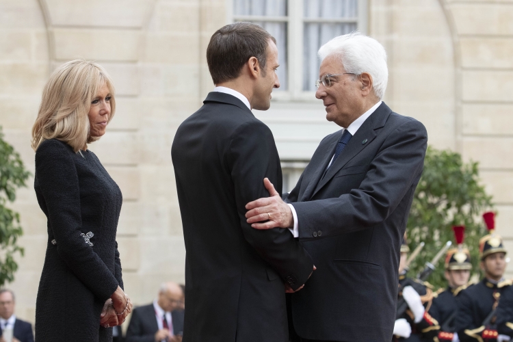 Il Presidente Sergio Mattarella accolto all'Eliseo dal Presidente della Repubblica Francese Emmanuel Macron dopo aver partecipato alle esequie solenni del Presidente Jacques Chirac