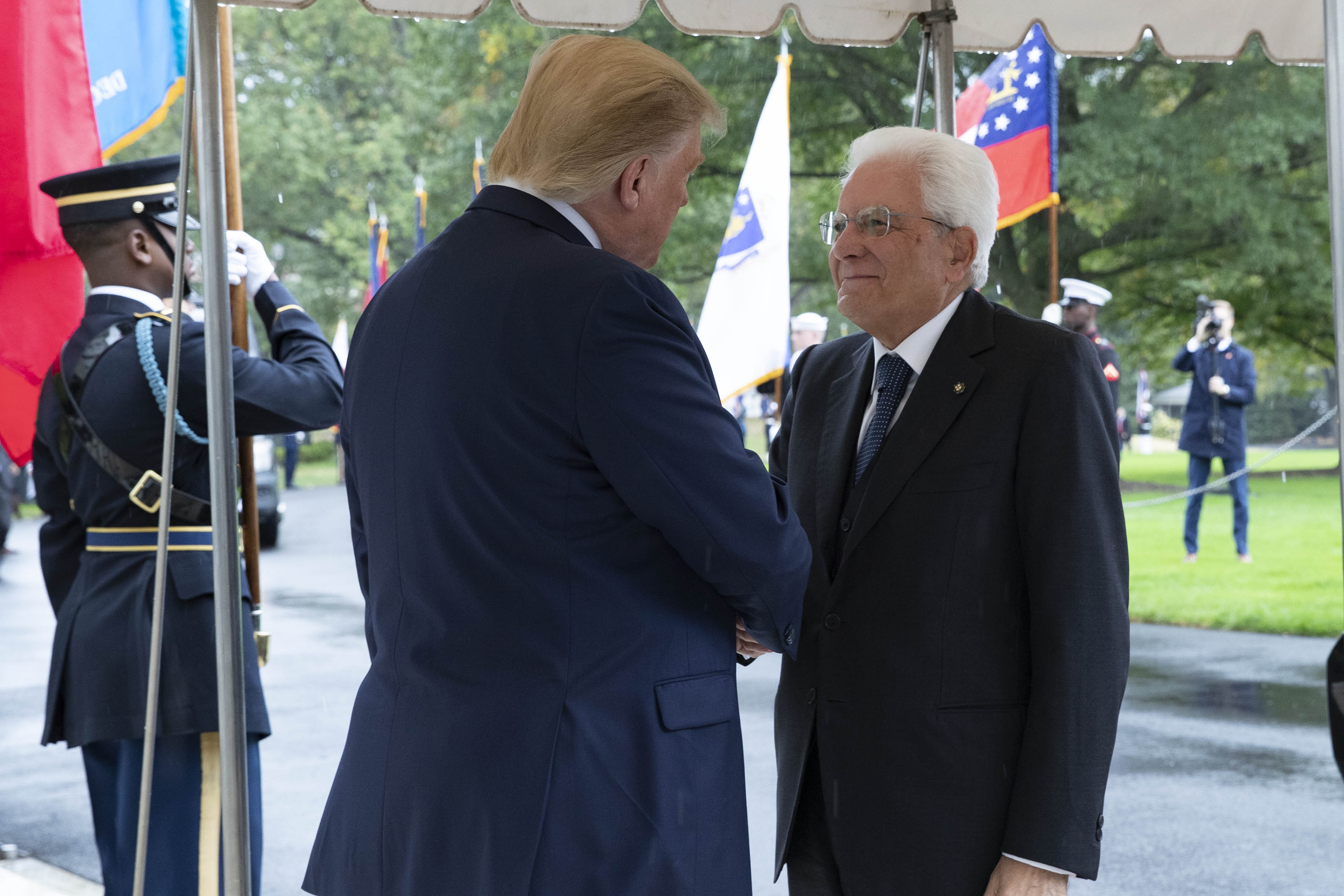 Il Presidente della Repubblica Sergio Mattarella arriva alla Casa Bianca accolto dal Presidente degli Stati Uniti d’America, Donald Trump, in occasione della Visita Ufficiale negli Stati Uniti d'America