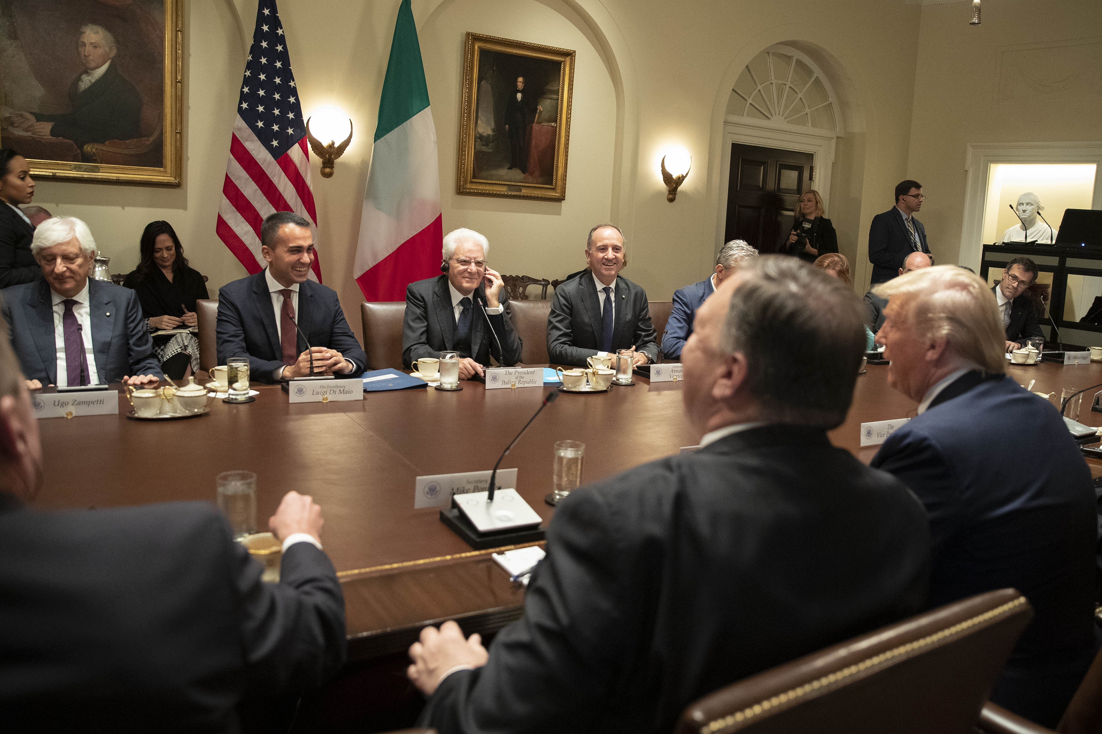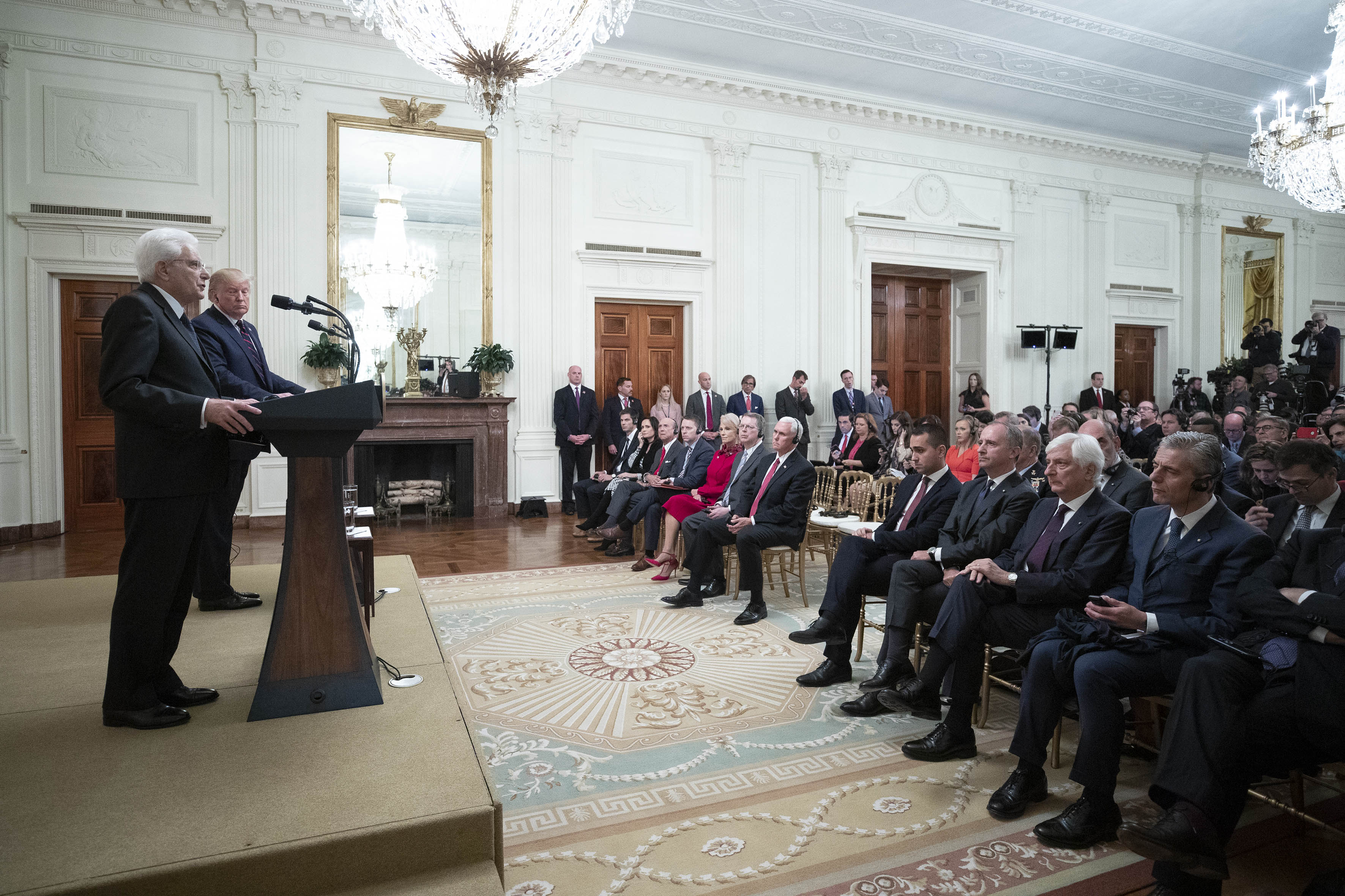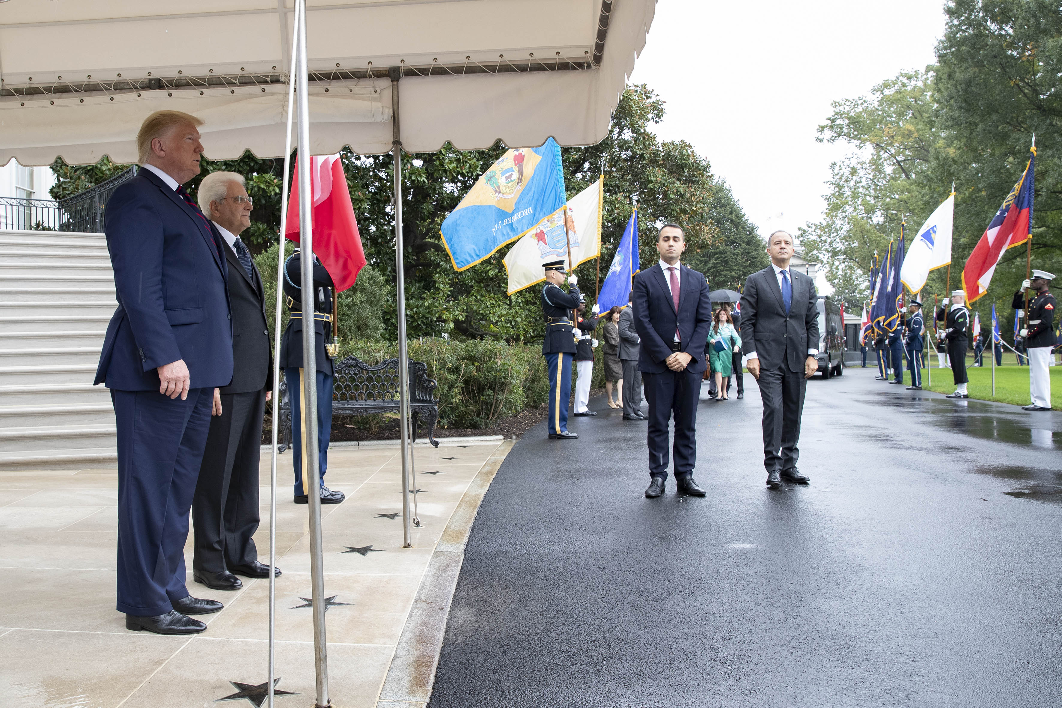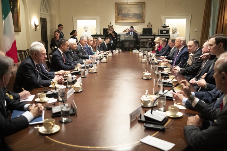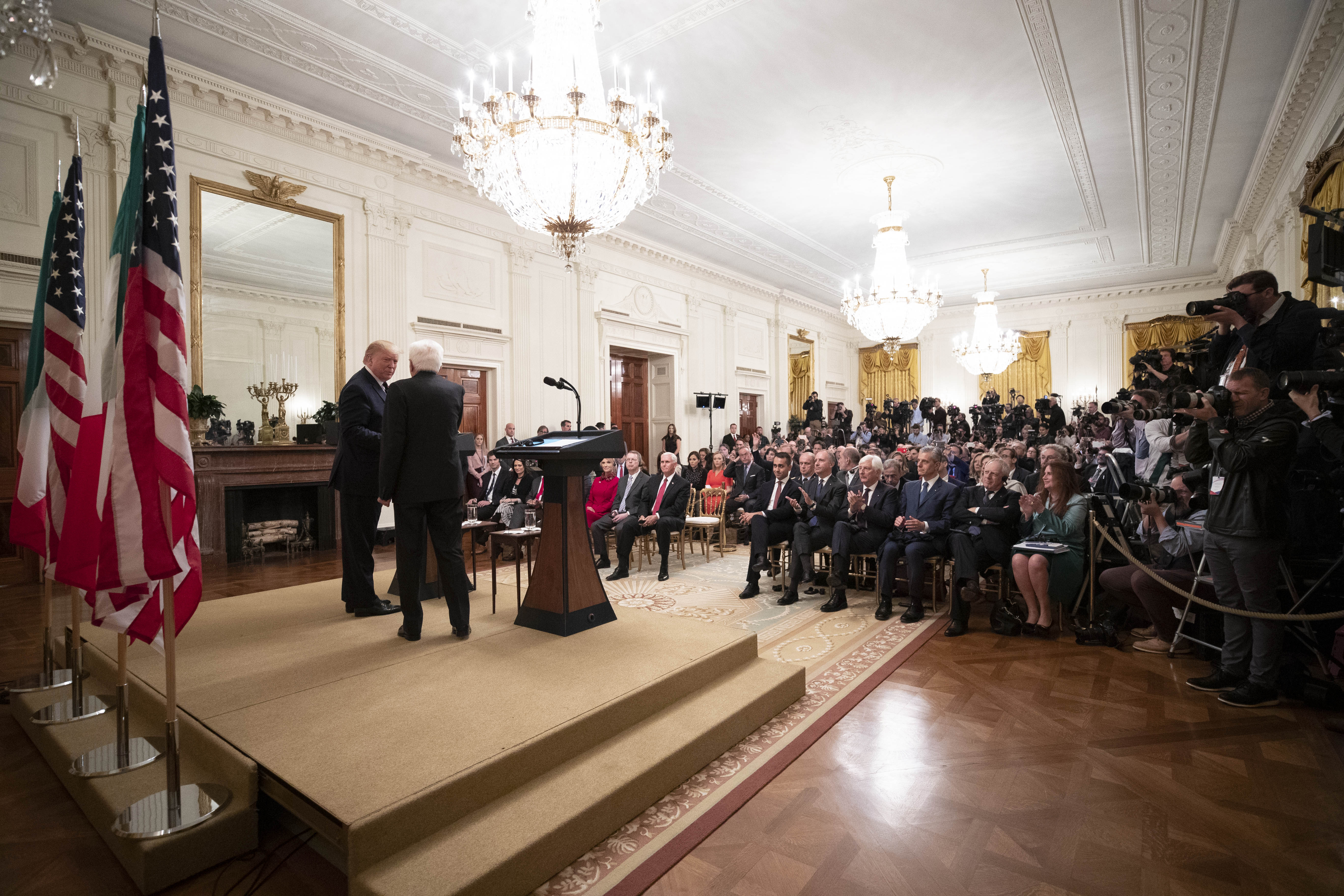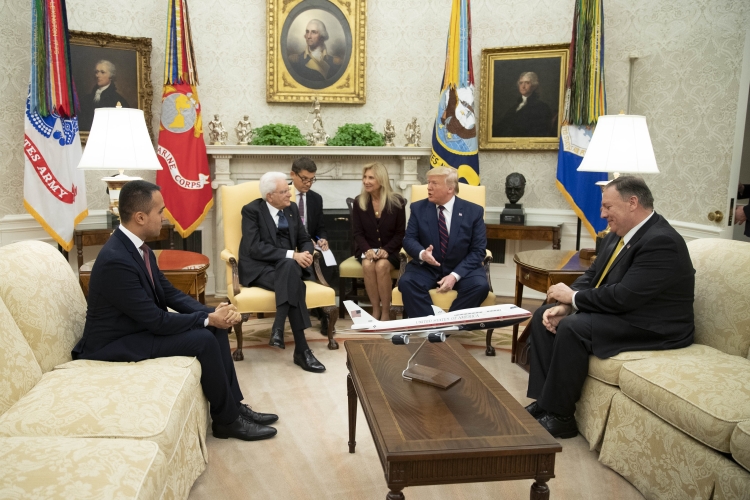 Il Presidente della Repubblica Sergio Mattarella, accompagnato dal Ministro degli Affari Esteri e della Cooperazione Internazionale Luigi Di Maio, alla Casa Bianca, con il Presidente degli Stati Uniti d’America, Donald Trump, in occasione della Visita Ufficiale negli Stati Uniti d'America