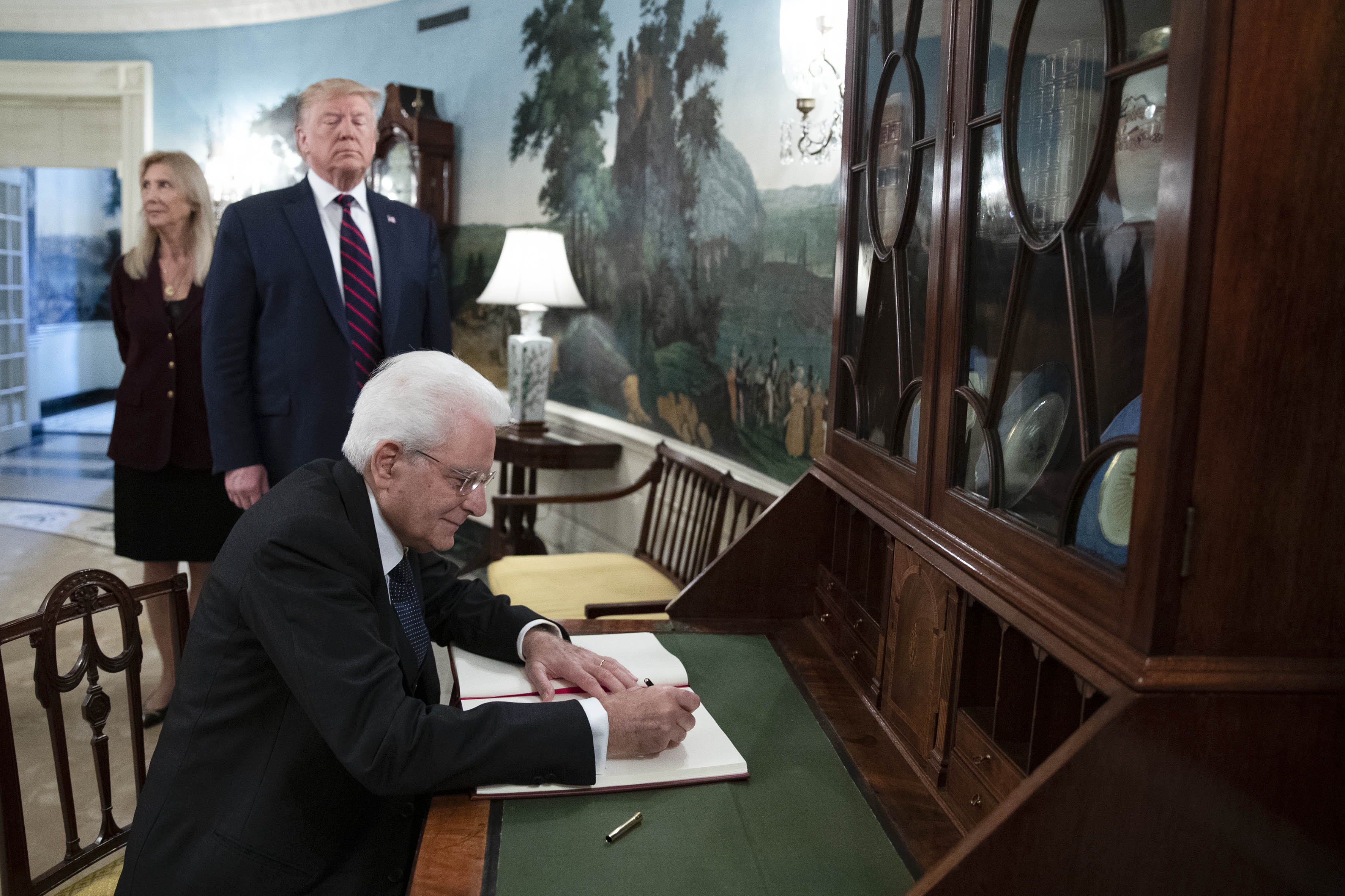 Il Presidente della Repubblica Sergio Mattarella, alla Casa Bianca, firma il Libro d'Onore