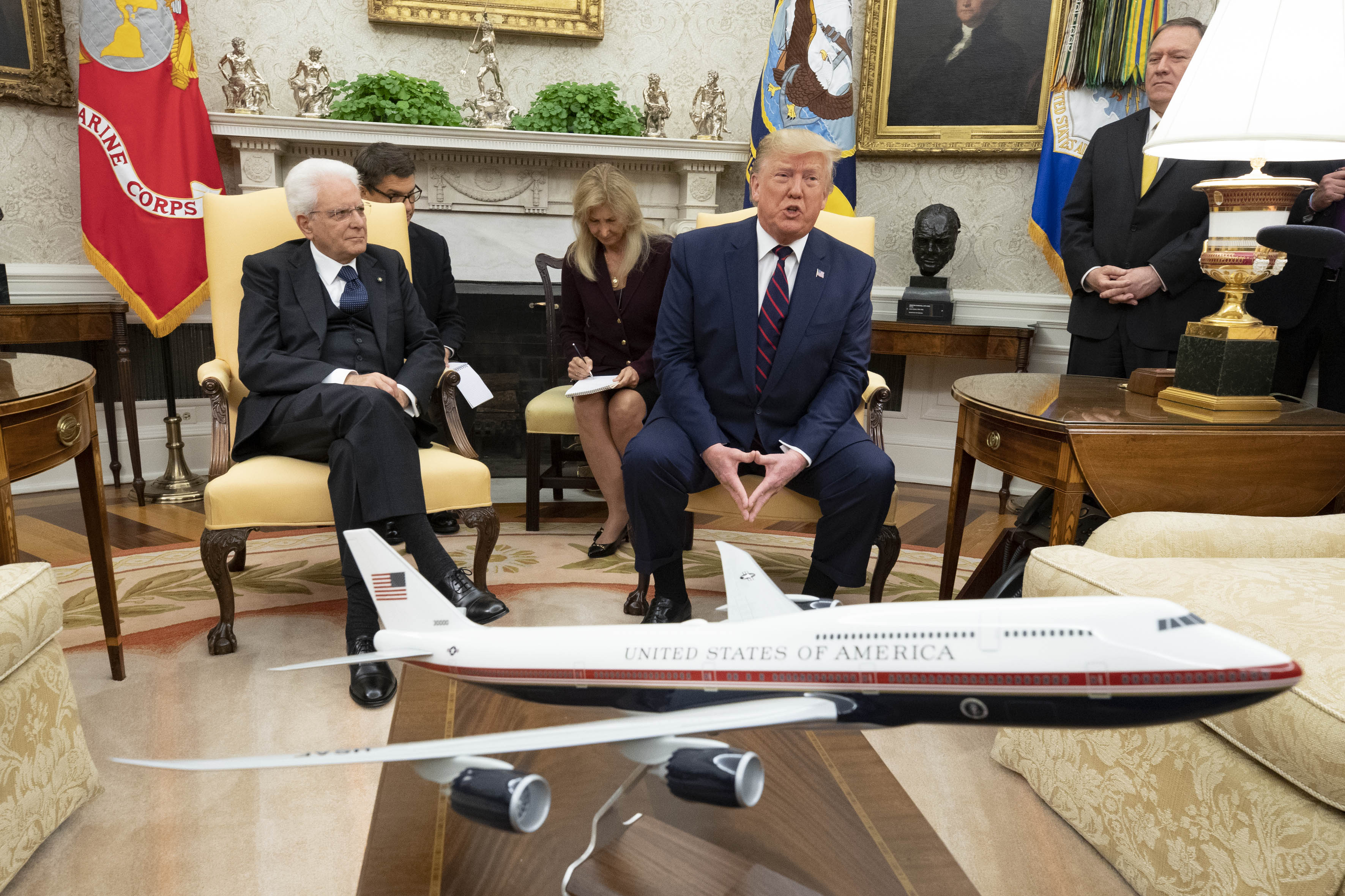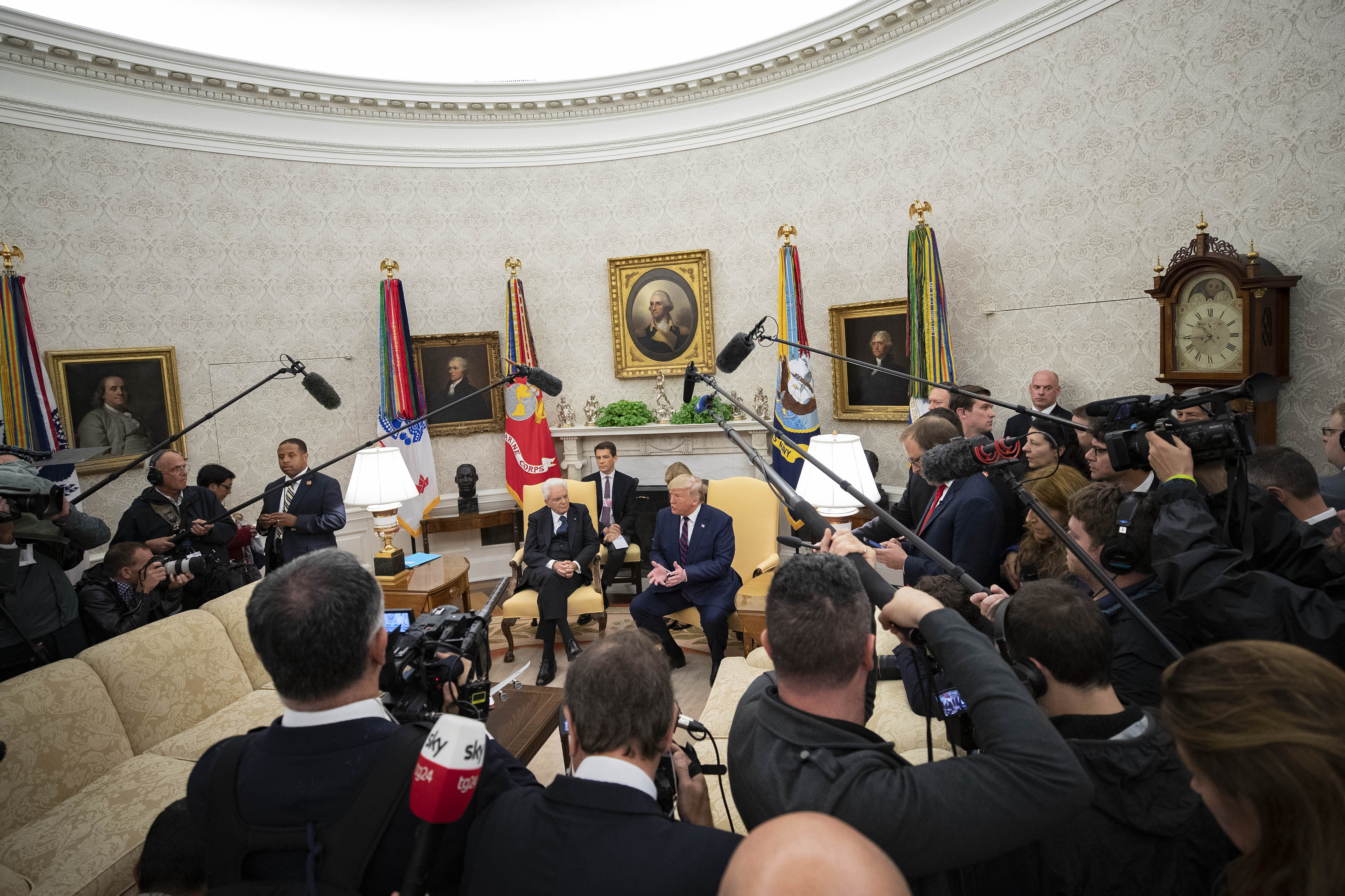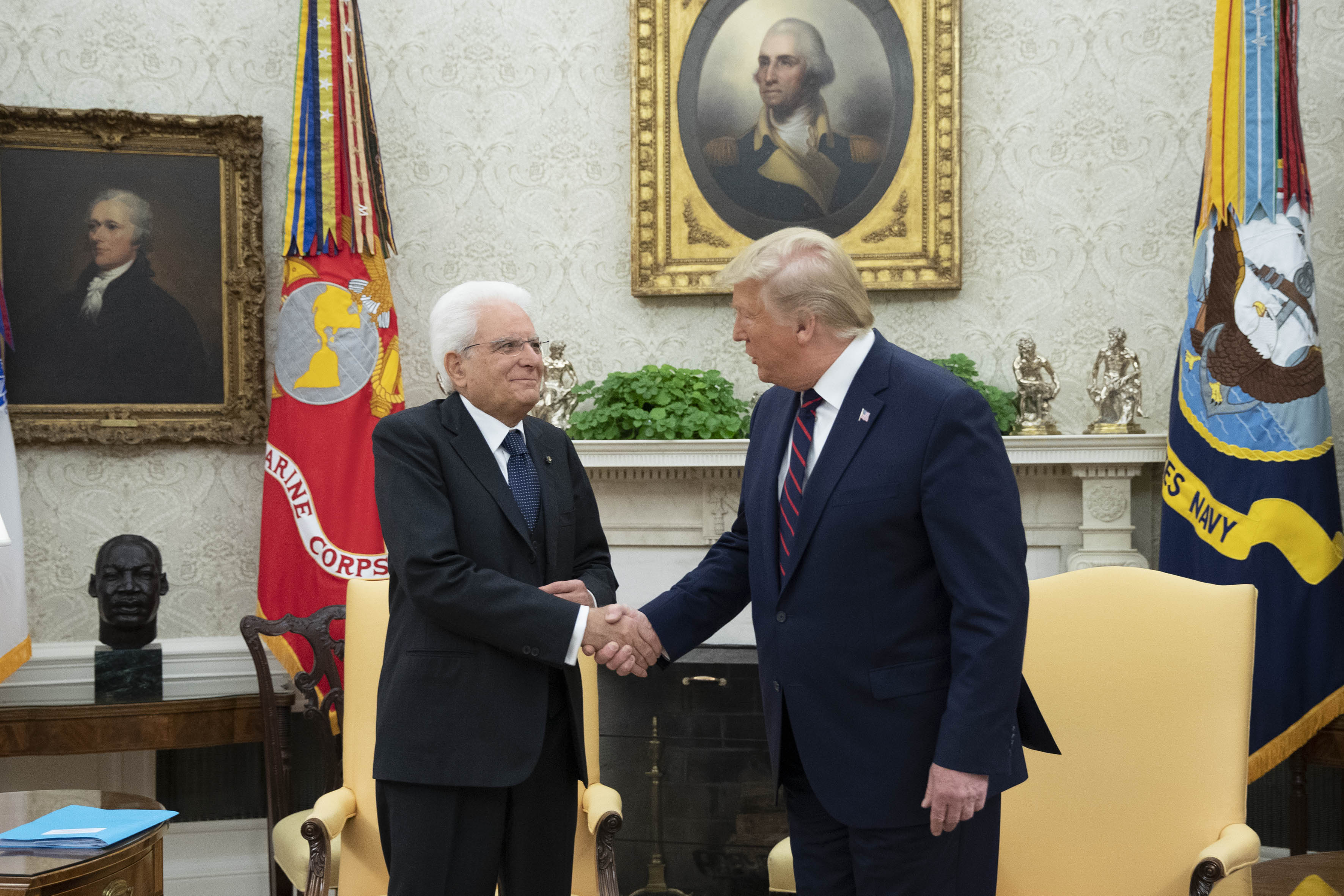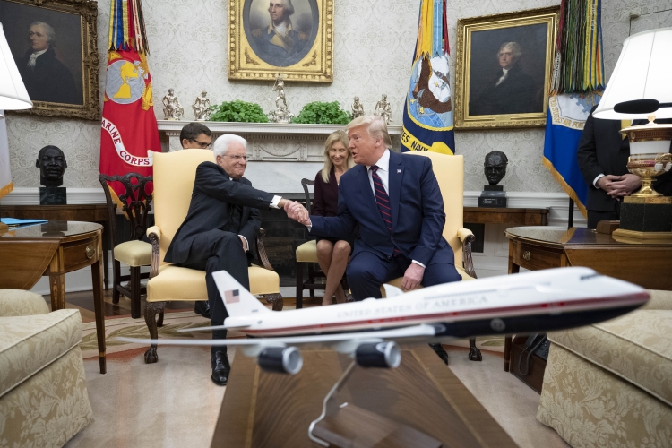 Il Presidente della Repubblica Sergio Mattarella allo Studio Ovale con il Presidente degli Stati Uniti d’America, Donald Trump, in occasione della Visita Ufficiale negli Stati Uniti d'America
