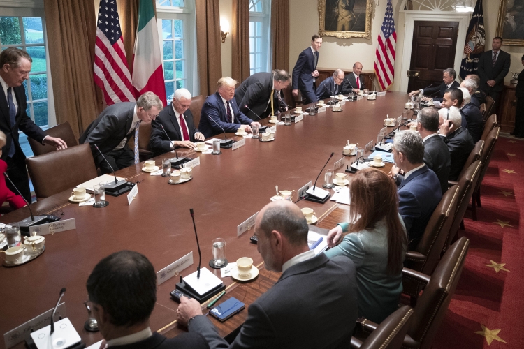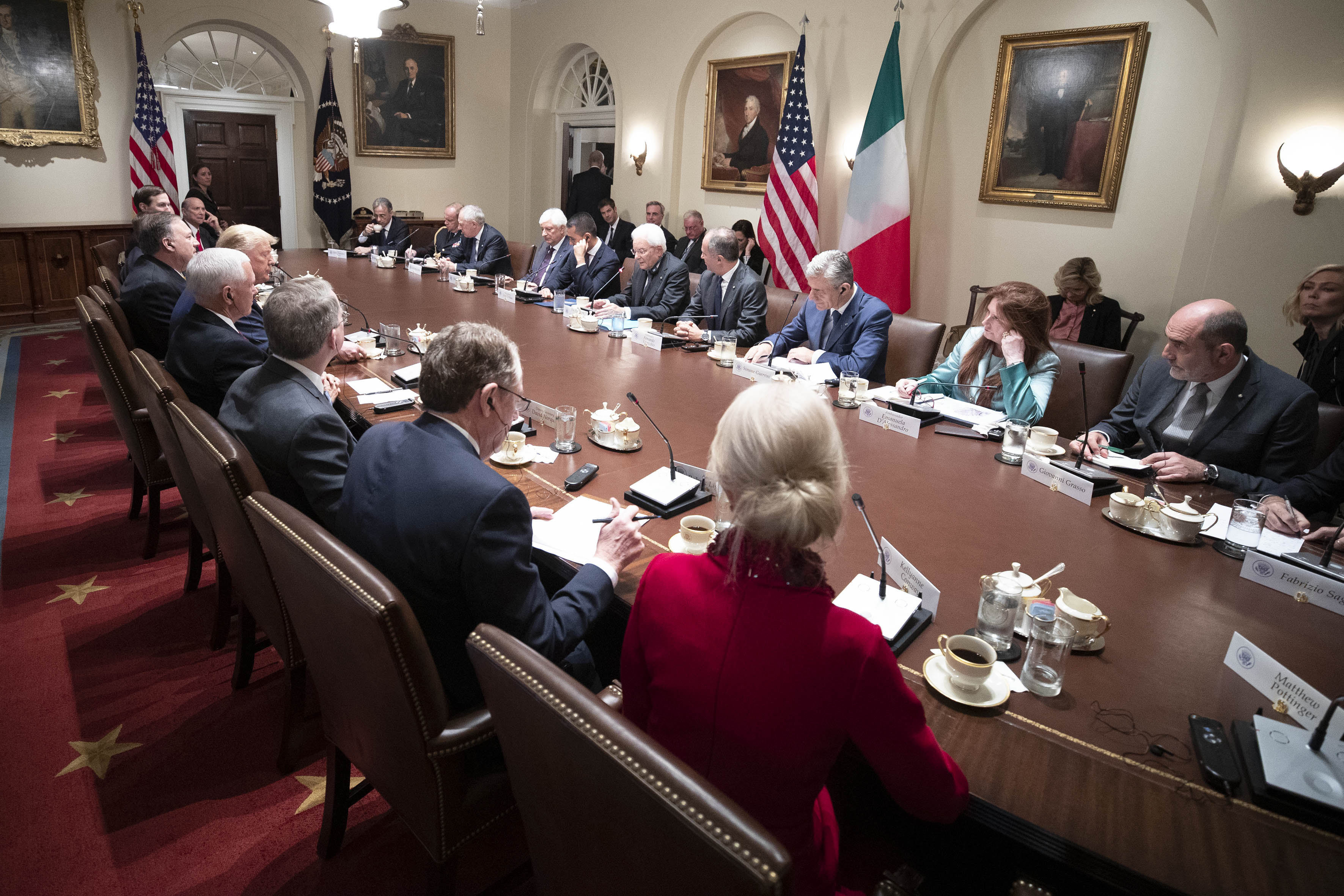 Il Presidente della Repubblica Sergio Mattarella con il Presidente degli Stati Uniti d’America, Donald Trump durante i colloqui con le rispettive Delegazioni ufficiali