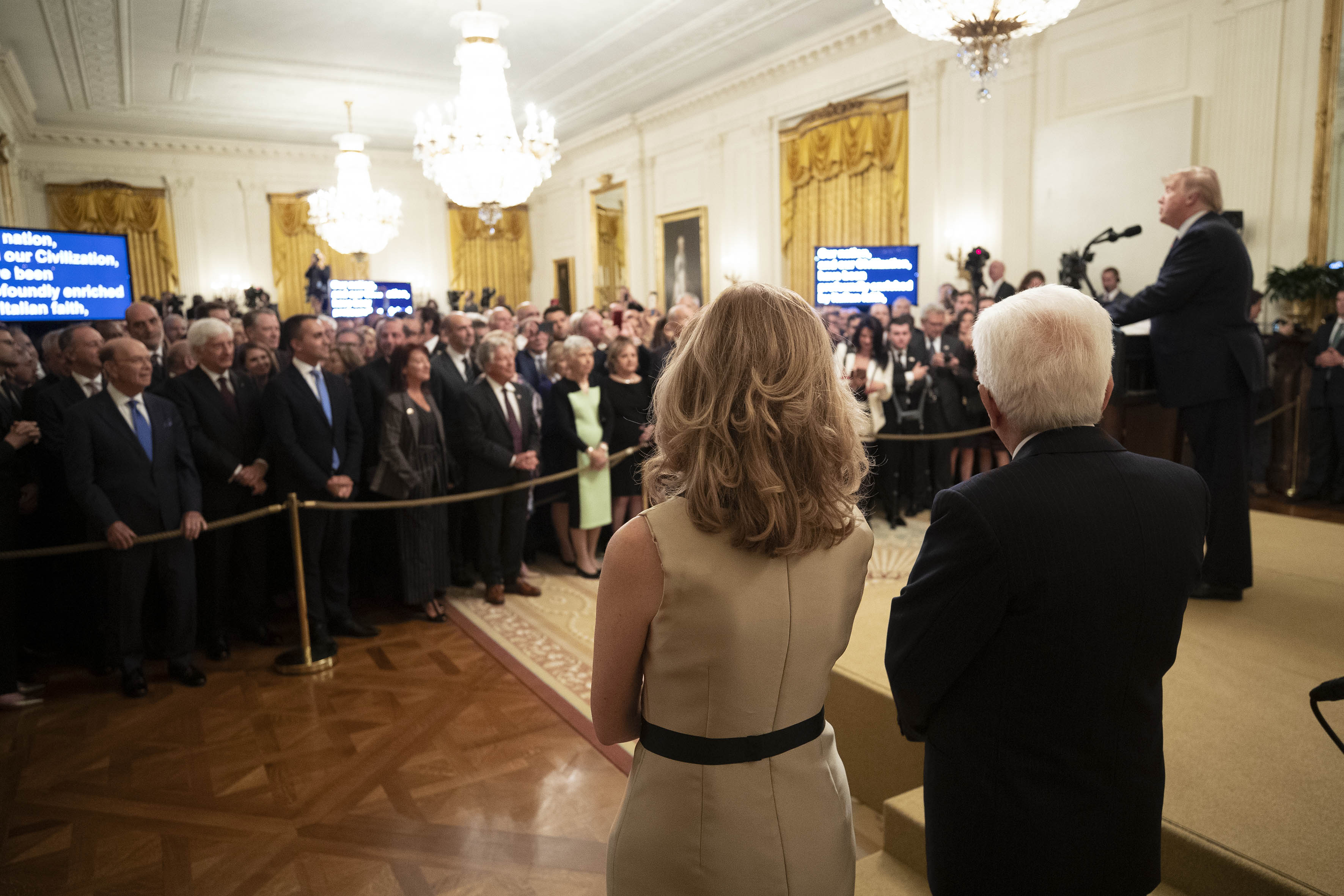 Il Presidente della Repubblica Sergio Mattarella e la Signora Laura Mattarella alla Casa Bianca, in occasione del ricevimento offerto dal Presidente degli Stati Uniti d’America, alla presenza di esponenti della comunità italo-americana