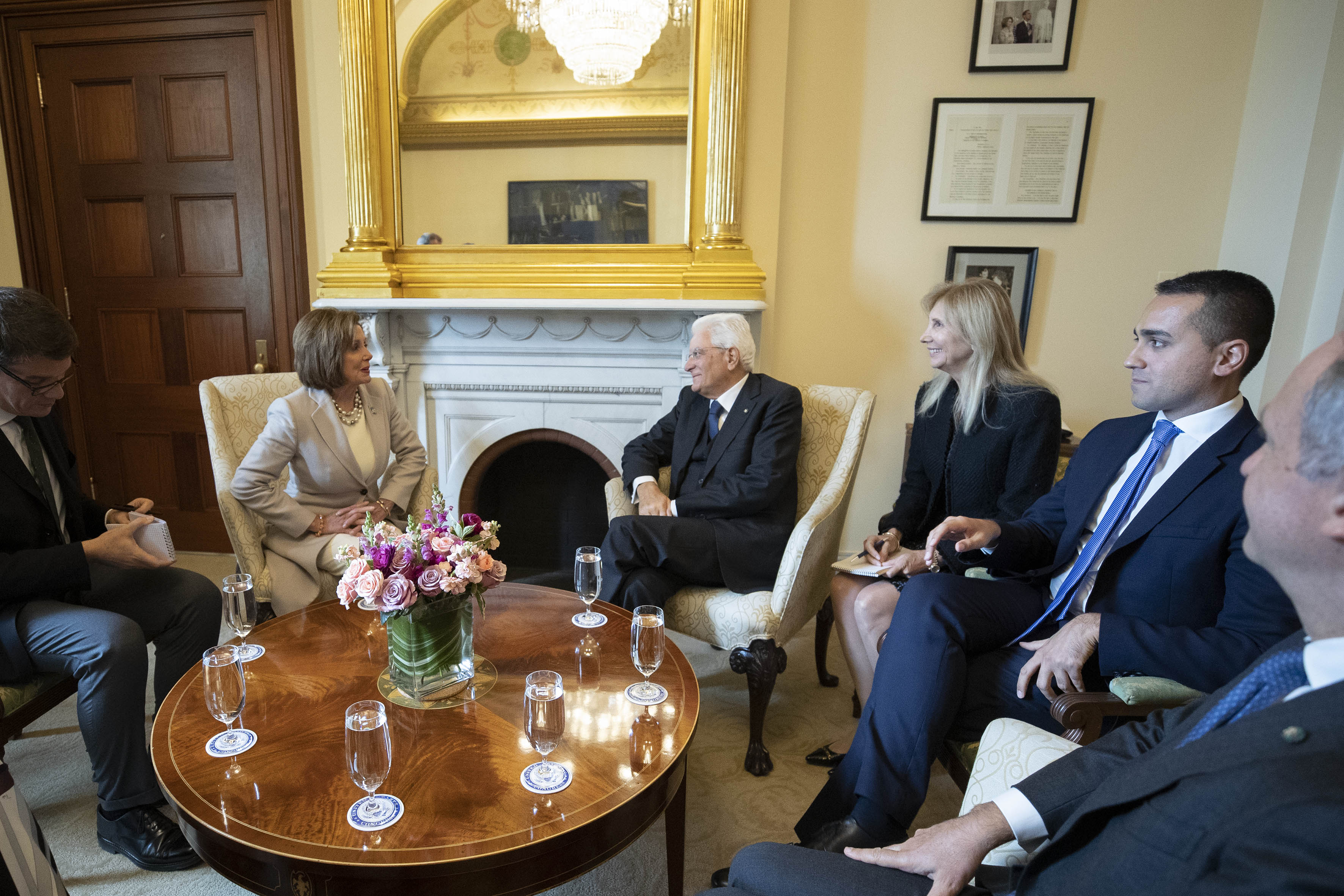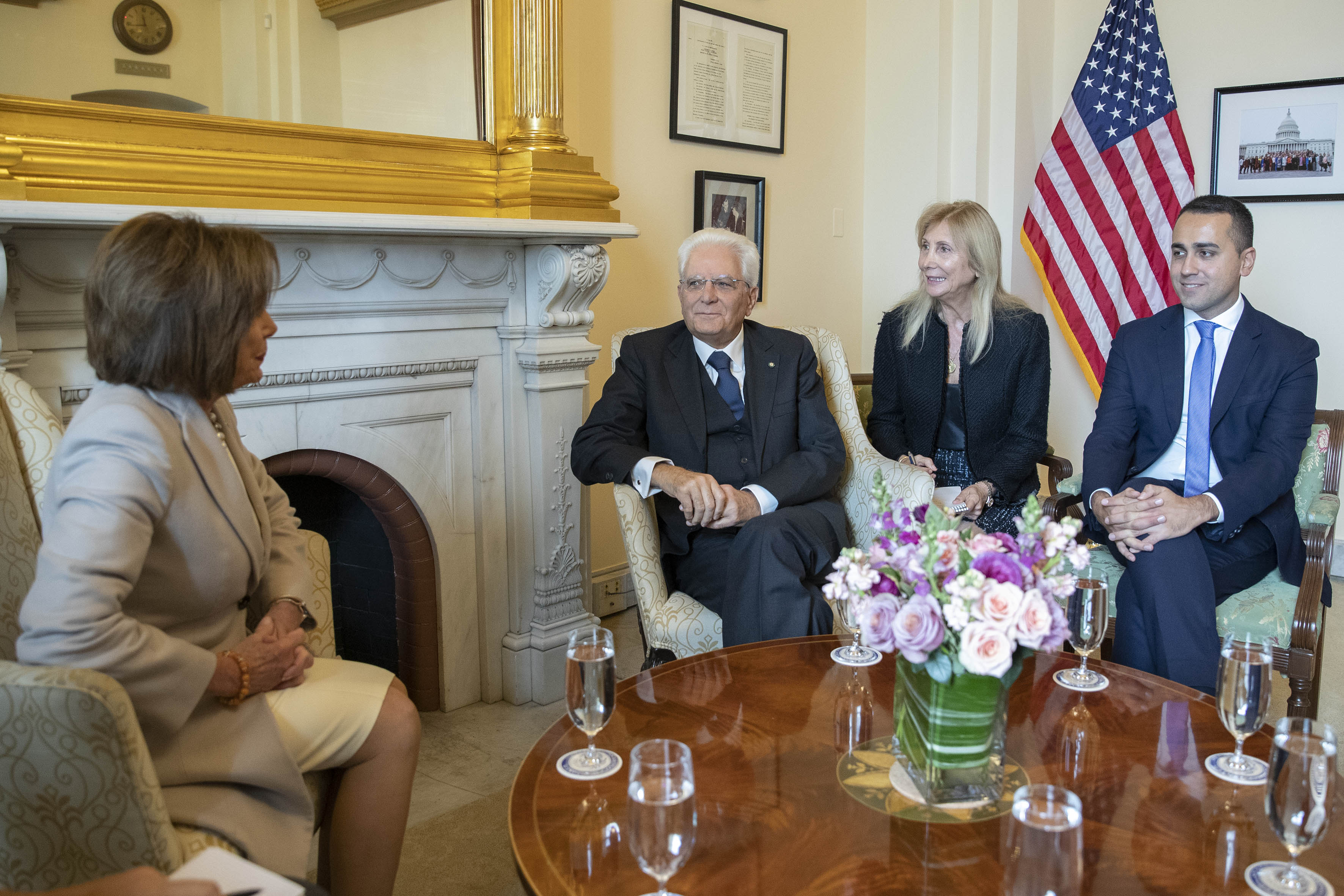 Il Presidente Sergio Mattarella con il Ministro degli Affari Esteri e della Cooperazione Internazionale Luigi Di Maio, nel corso dei colloqui con la Presidente della Camera dei Rappresentanti, Nancy Pelosi