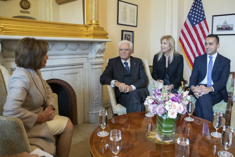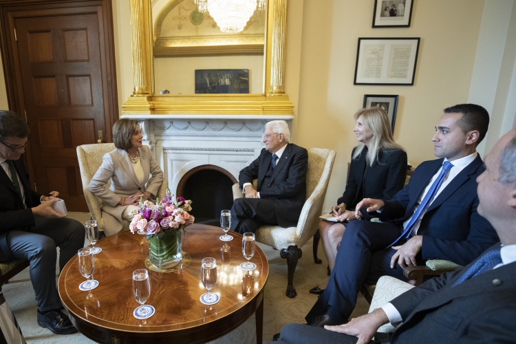 Il Presidente Sergio Mattarella con il Ministro degli Affari Esteri e della Cooperazione Internazionale Luigi Di Maio, incontra la Presidente della Camera dei Rappresentanti, Nancy Pelosi, in occasione della Visita Ufficiale negli Stati Uniti d'America