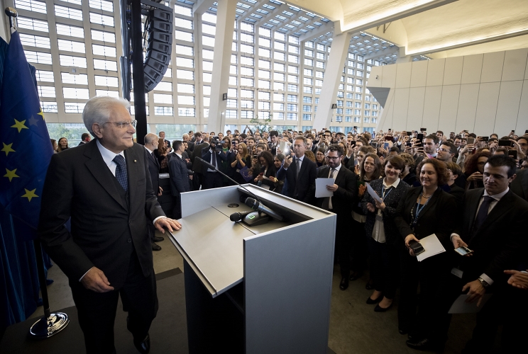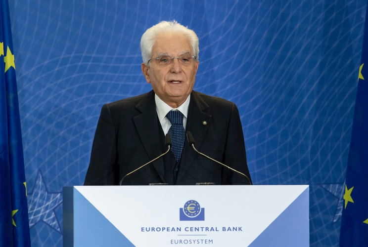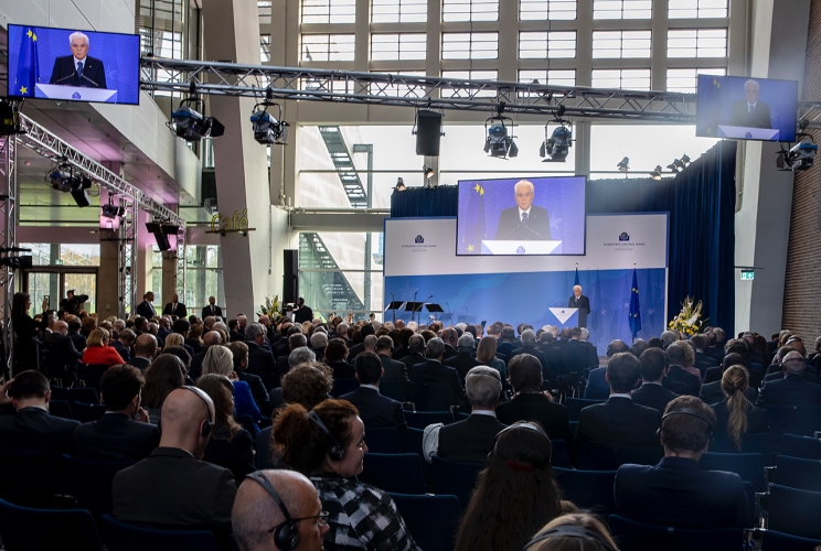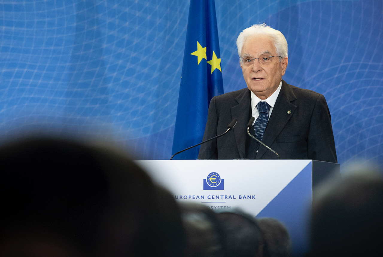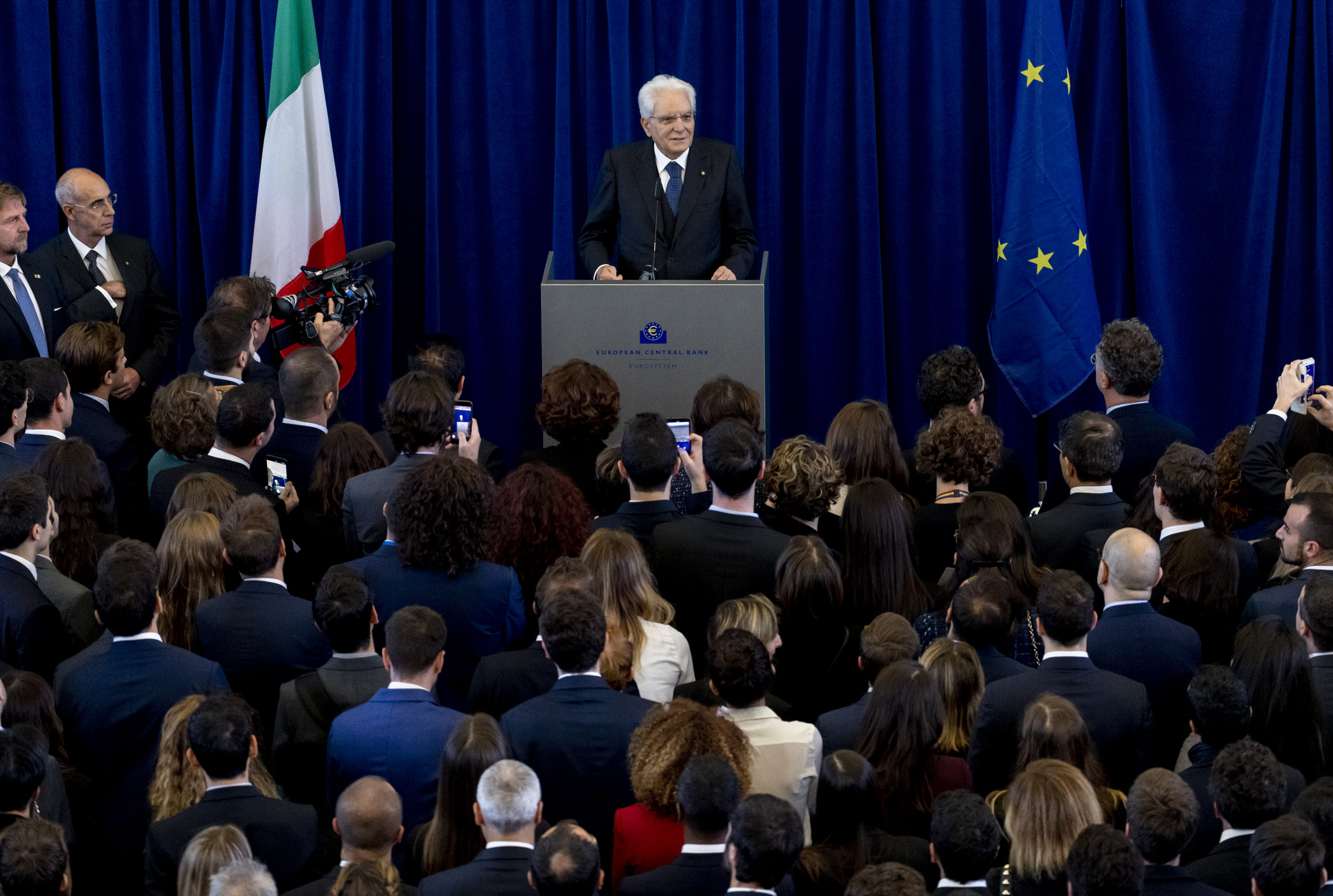 Il Presidente della Repubblica Sergio Mattarella nel corso dell’incontro con i funzionari italiani della BCE, in occasione della cerimona di commiato del Presidente della Banca Centrale Europea Mario Draghi
