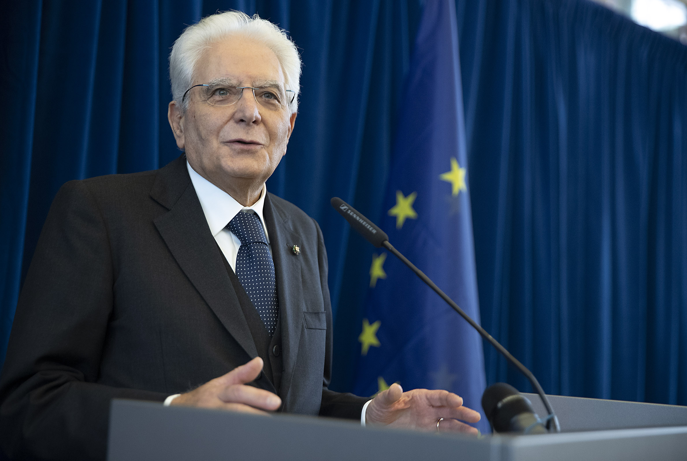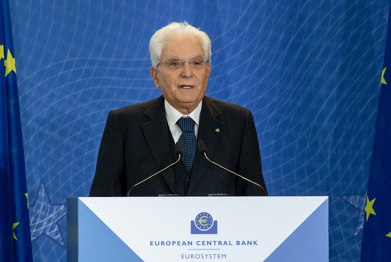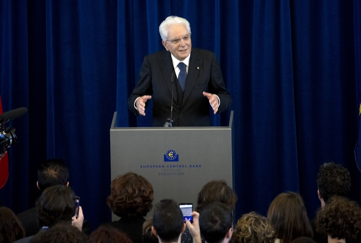 Il Presidente Sergio Mattarella nel corso dell’incontro con i funzionari italiani della Banca Centrale Europea