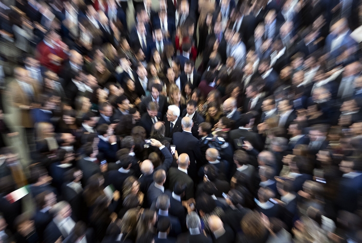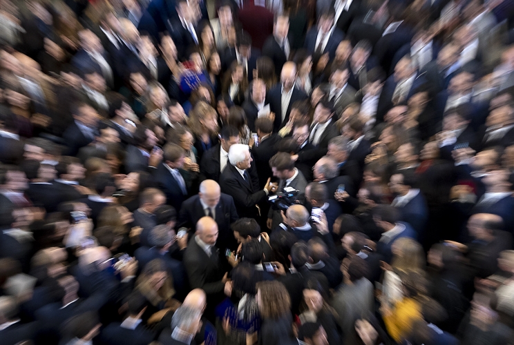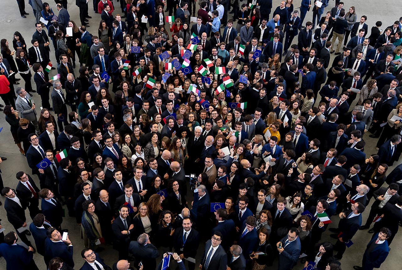 Il Presidente della Repubblica Sergio Mattarella con i funzionari italiani della BCE in occasione della cerimona di commiato del Presidente della Banca Centrale Europea Mario Draghi