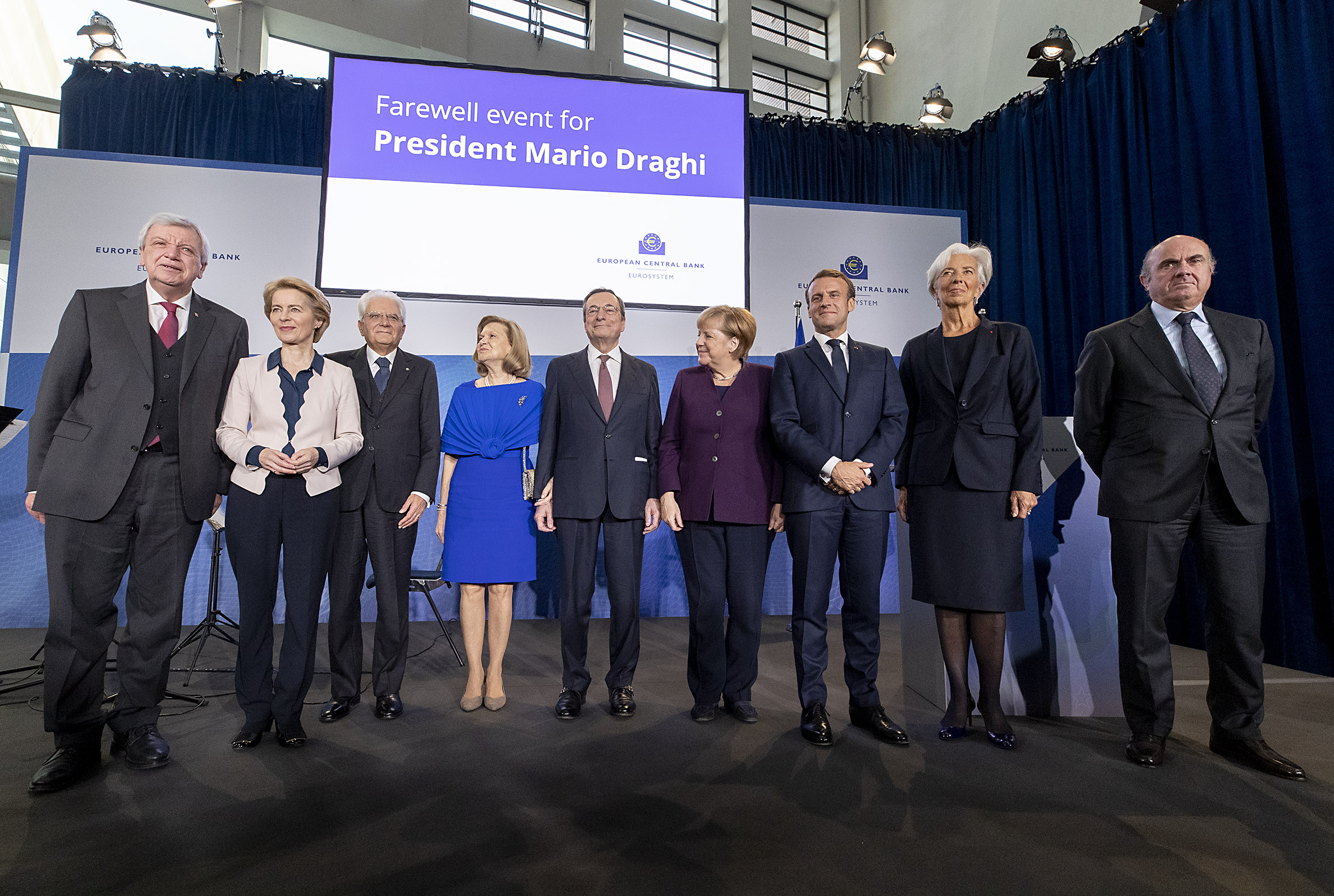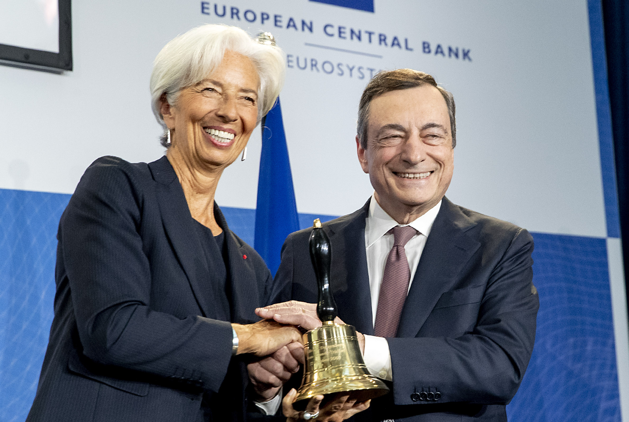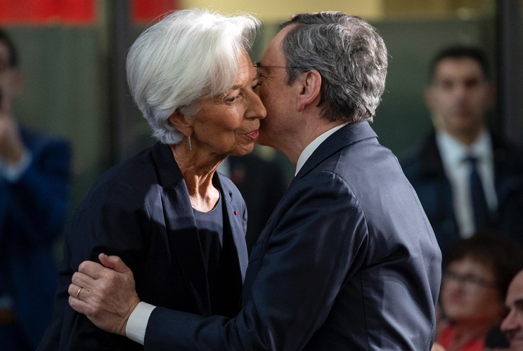 Il Presidente della BCE Mario Draghi con Chrisitne Lagarde, Presidente designata della Banca Centrale Europea