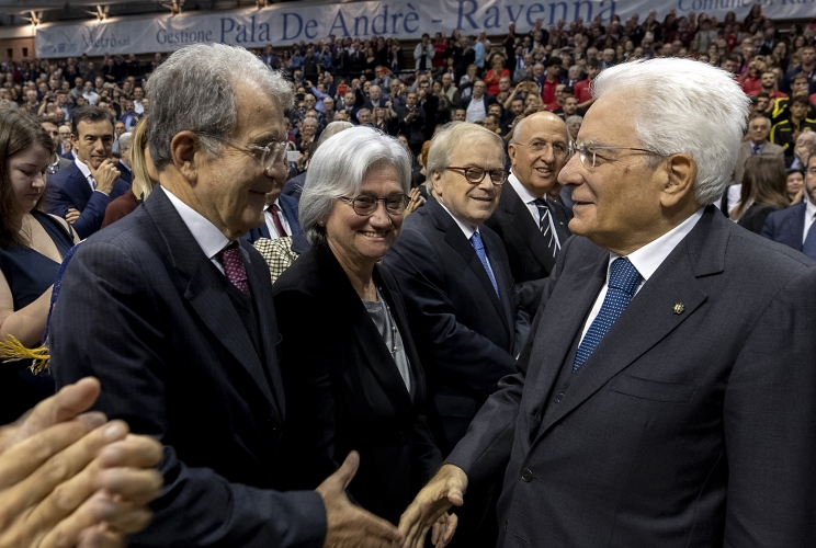 Il Presidente della Repubblica Sergio Mattarella, con il Sindaco di Ravenna Michele de Pascale, in occasione della cerimonia in ricordo del Sen. Benigno Zaccagnini, nel 30° anniversario della scomparsa
