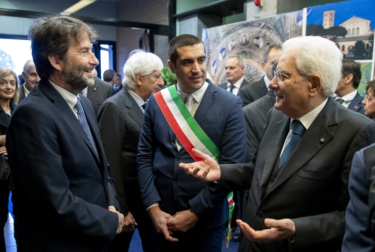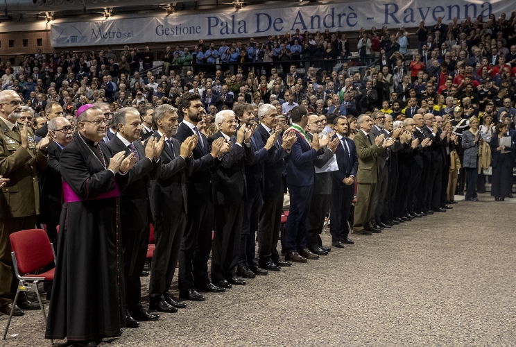 Il Presidente della Repubblica Sergio Mattarella con il Ministro Dario Franceschini e il Sindaco di Ravenna Michele de Pascale, in occasione della cerimonia in ricordo del Sen. Benigno Zaccagnini, nel 30° anniversario della scomparsa