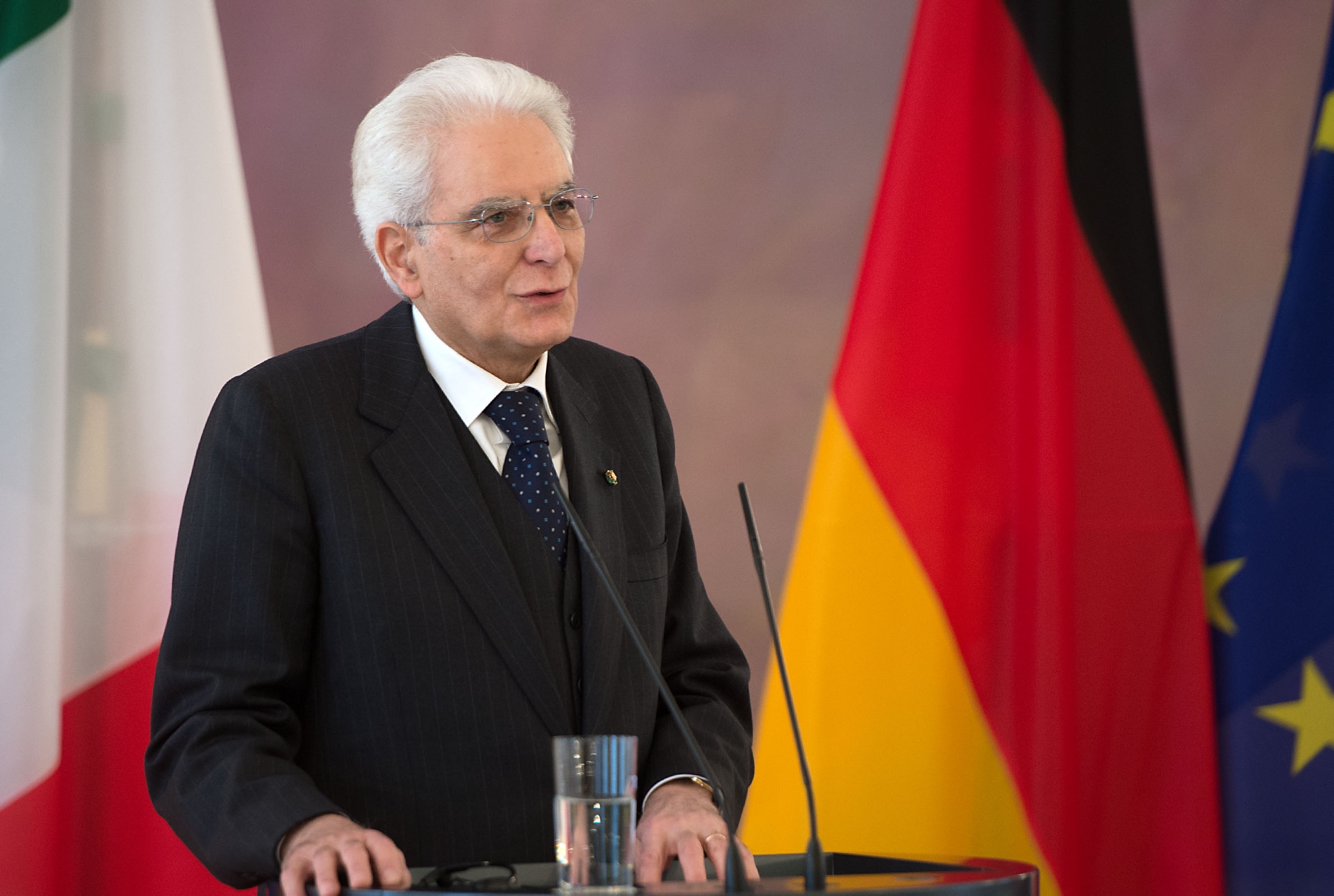 Il Presidente Sergio Mattarella nel corso dell'incontro con la stampa al termine dei colloqui con il Presidente della Repubblica federale di Germania Joachim Gauck