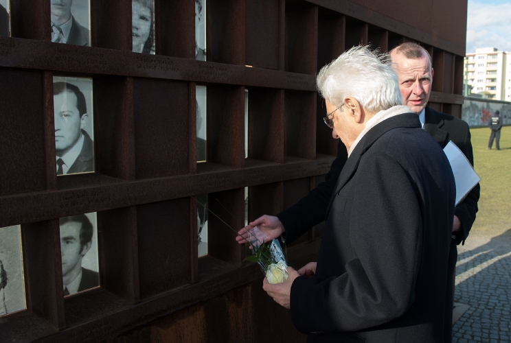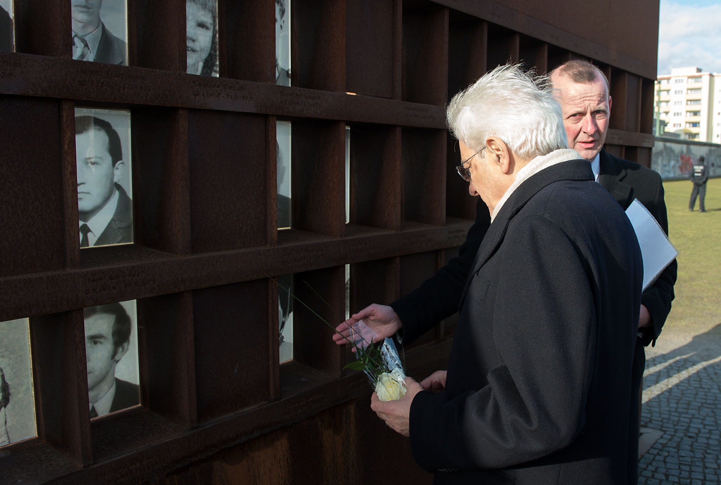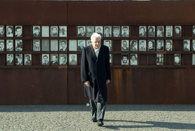 Il Presidente Sergio Mattarella nel corso della visita al "Memoriale del Muro di Berlino" in Bernauer Strasse