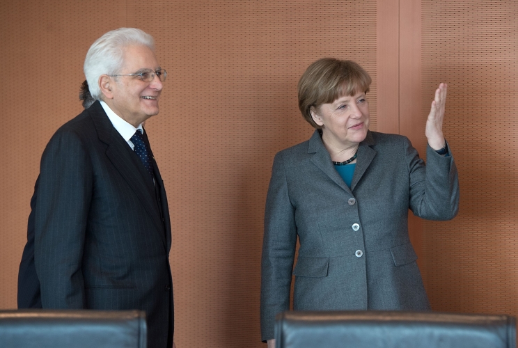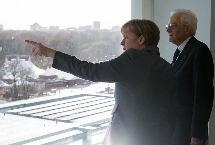 Il Presidente Sergio Mattarella con il Cancelliere della Repubblica Federale di Germania Angela Merkel