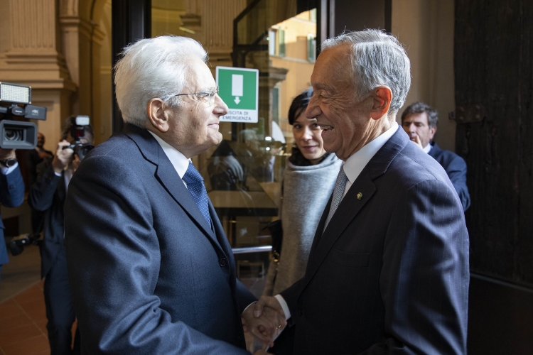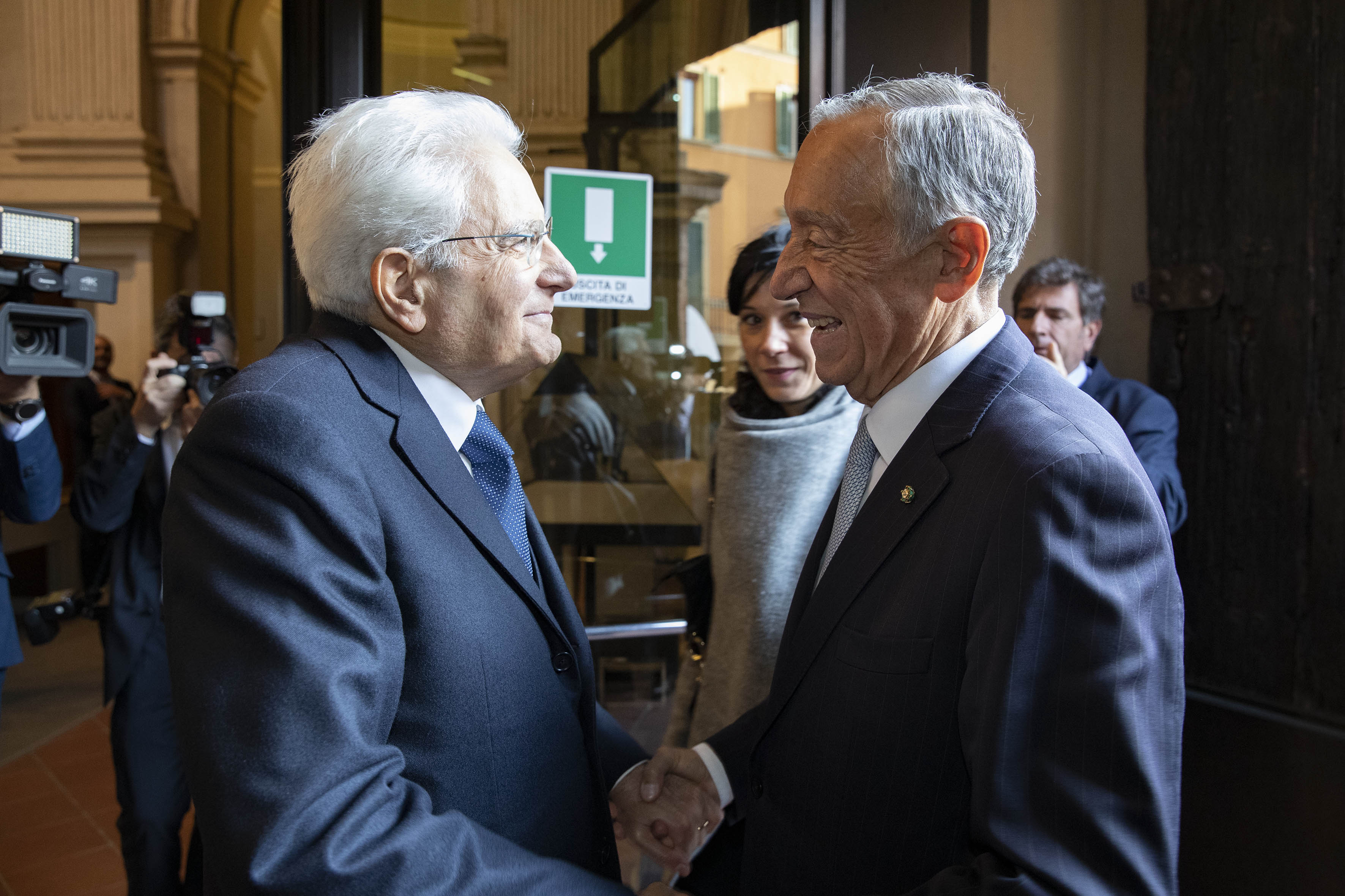 Il Presidente della Repubblica Sergio Mattarella accoglie il Presidente Repubblica Portoghese, Marcelo Nuno Duarte Rebelo de Sousa, in occasione della cerimonia di conferimento del Sigillum Magnum al Presidente della Repubblica Portoghese