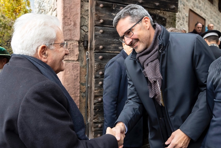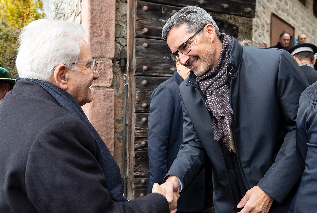 Il Presidente Mattarella con il Presidente della Provincia Autonoma di Bolzano, Arno Kompatscher, in occasione della celebrazione dei 100 anni del Trattato di Saint - Germain e il 50° anniversario del "pacchetto per l'Alto Adige