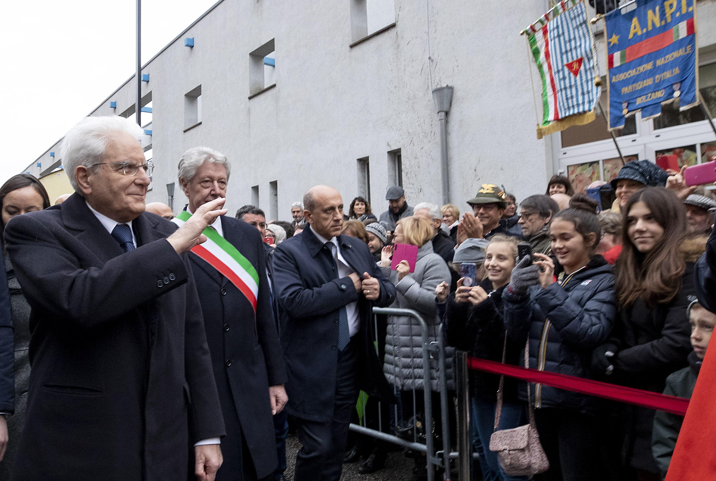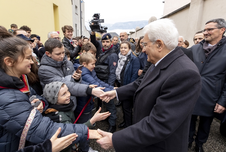 Il Presidente della Repubblica Sergio Mattarella saluta i ragazzi presenti al “Muro della memoria”