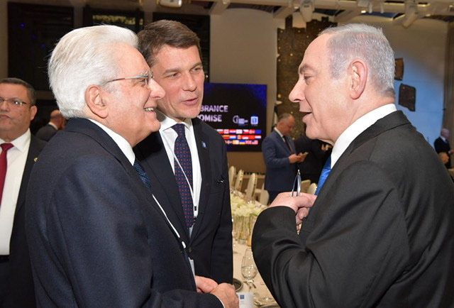 Il Presidente della Repubblica Sergio Mattarella con il Primo ministro della Stato di Israele Benjamin Netanyahu in occasione del Pranzo offerto dal Presidente dello Stato di Israele per il 75 anniversario della liberazione di Auschwitz- Birkenau