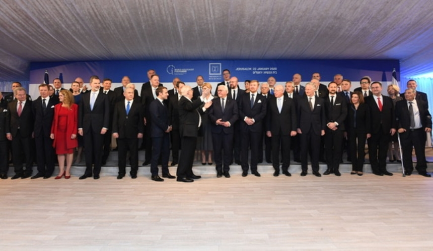 La foto di gruppo in occasione del Pranzo offerto dal Presidente dello Stato di Israele in occasione del 75 anniversario della liberazione di Auschwitz - Birkenau