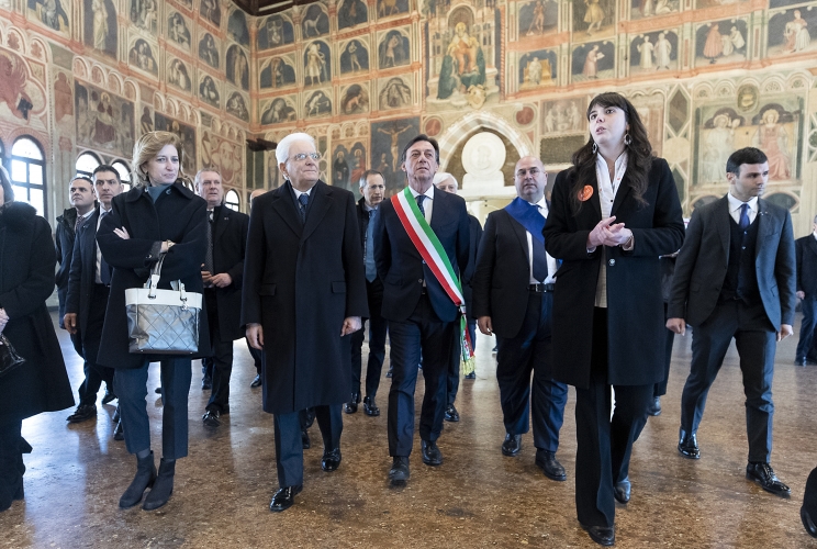 Il Presidente Sergio Mattarella nel corso della visita al Palazzo della Ragione