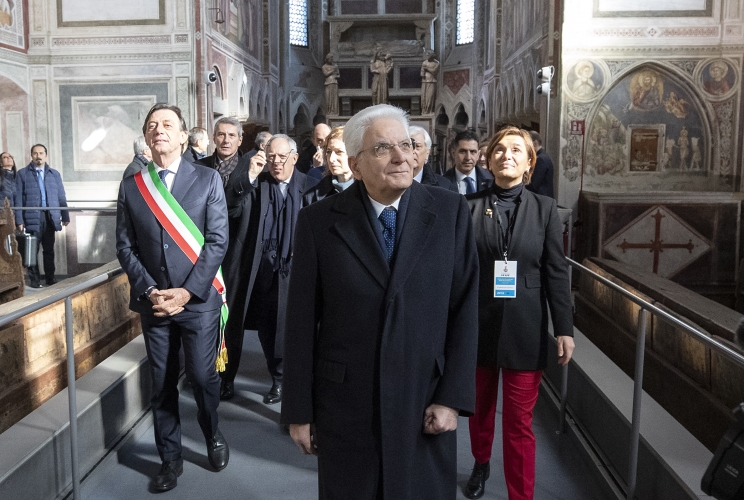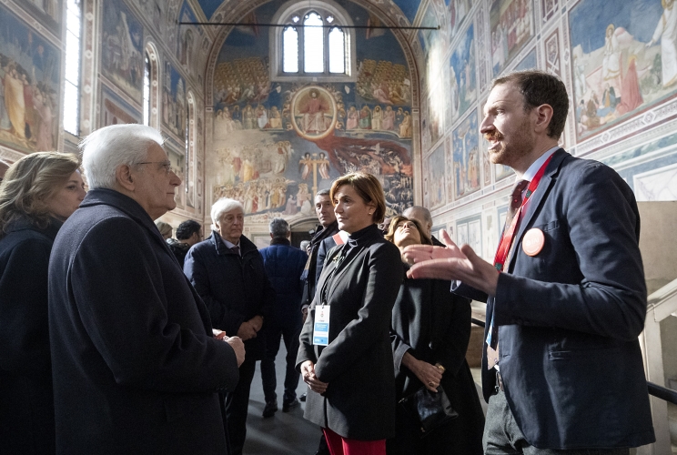 Il Presidente Sergio Mattarella nel corso della visita alla Cappella degli Scrovegni