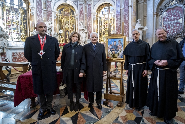 Il Presidente Sergio Mattarella nel corso della visita alla Basilica di Sant'Antonio