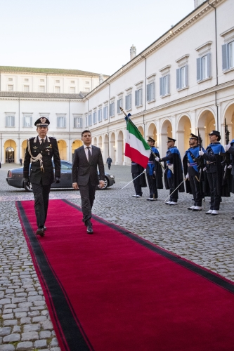 Il Presidente di Ucraina, S.E. il Signor Volodymyr Oleksandrovych Zelenskyy,durante gli onori al suo arrivo al Quirinale