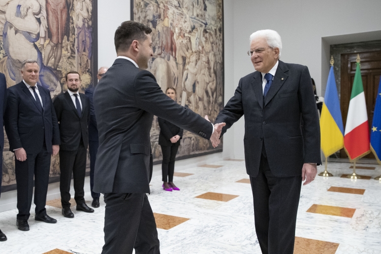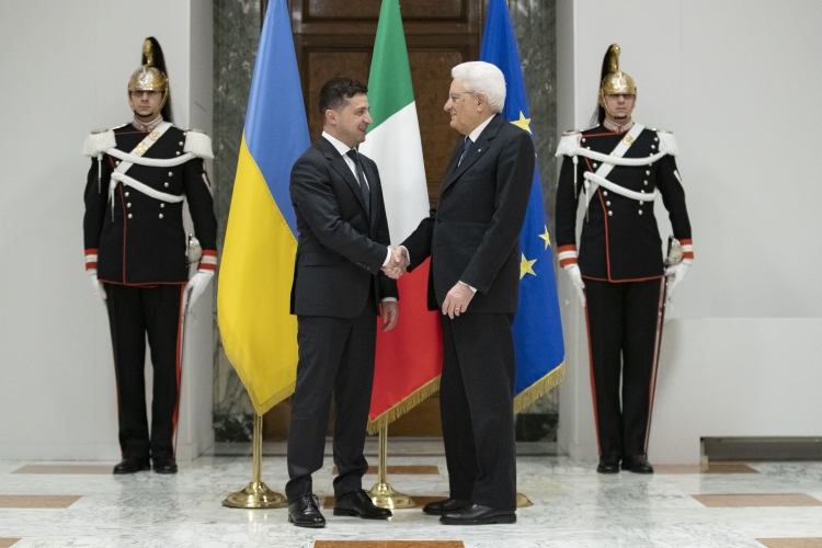Il Presidente Sergio Mattarella con il Presidente di Ucraina, S.E. il Signor Volodymyr Oleksandrovych Zelenskyy.