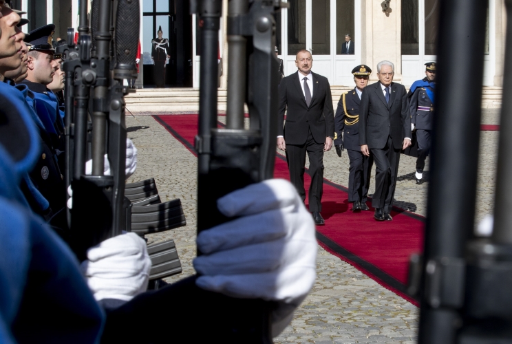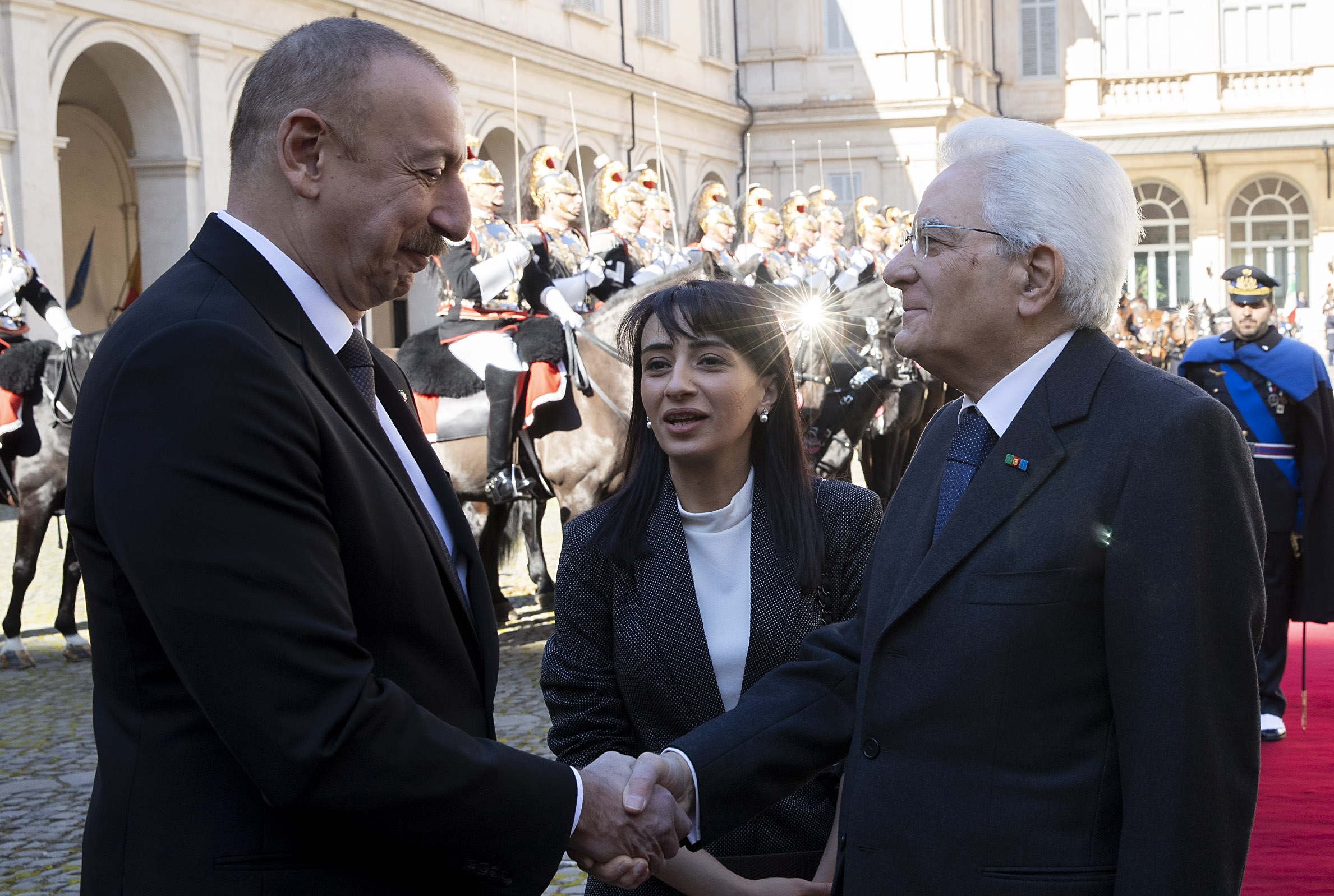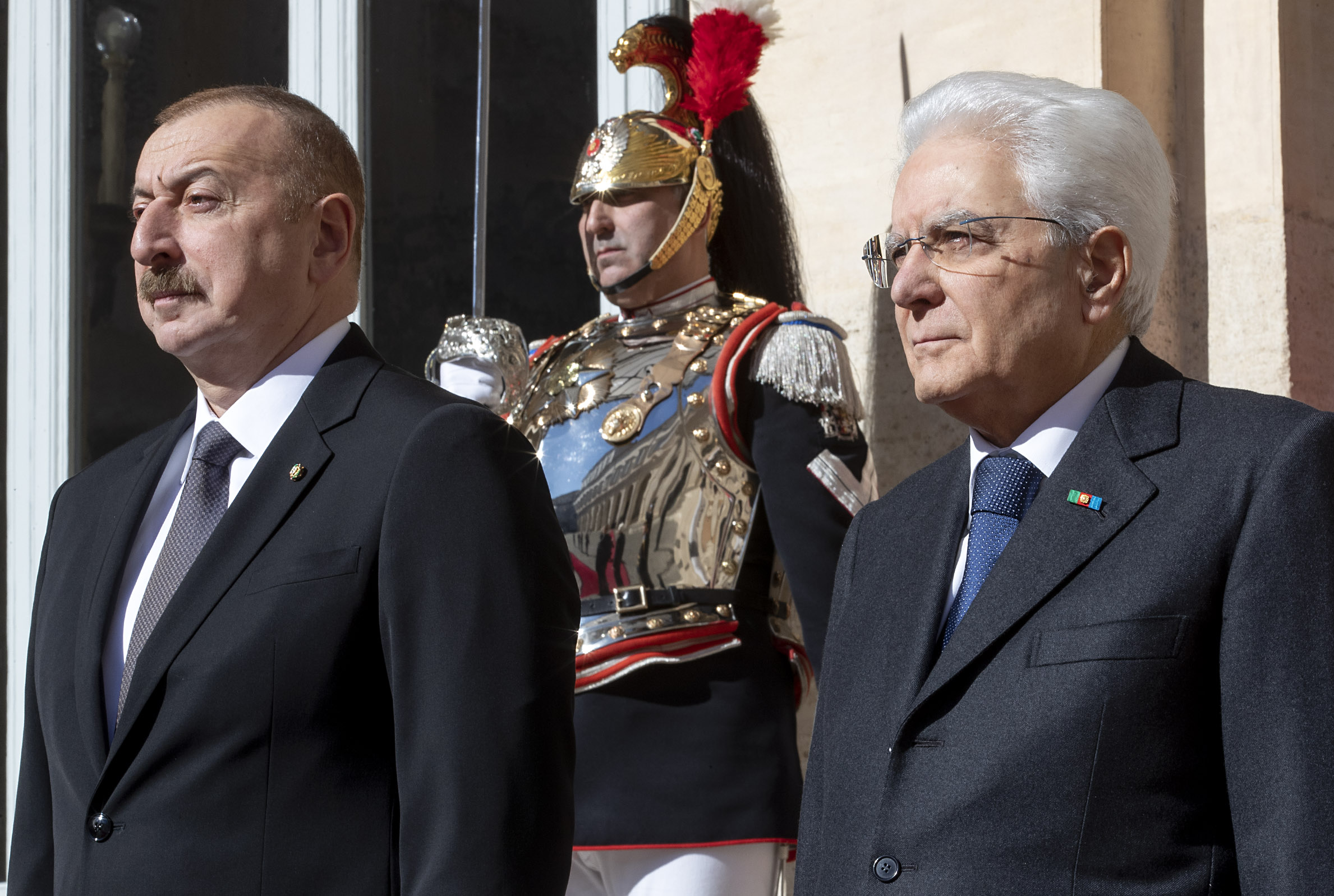 Il Presidente Sergio Mattarella con il Presidente della Repubblica dell’Azerbaigian, S.E. il Signor Ilham Aliyev, al termine della visita di Stato
