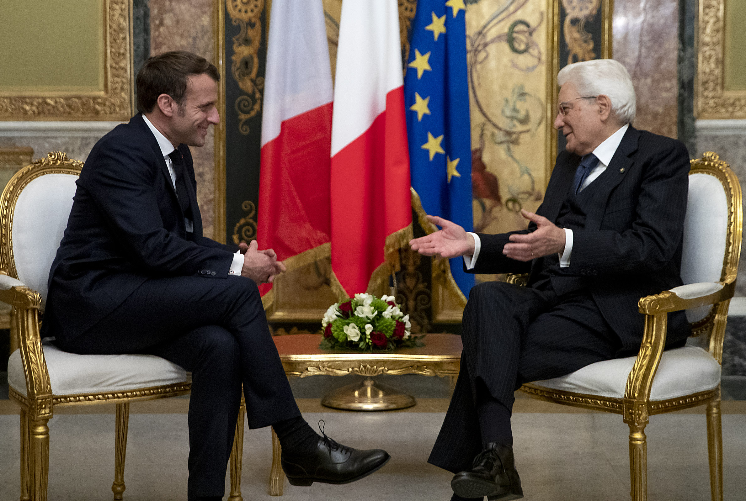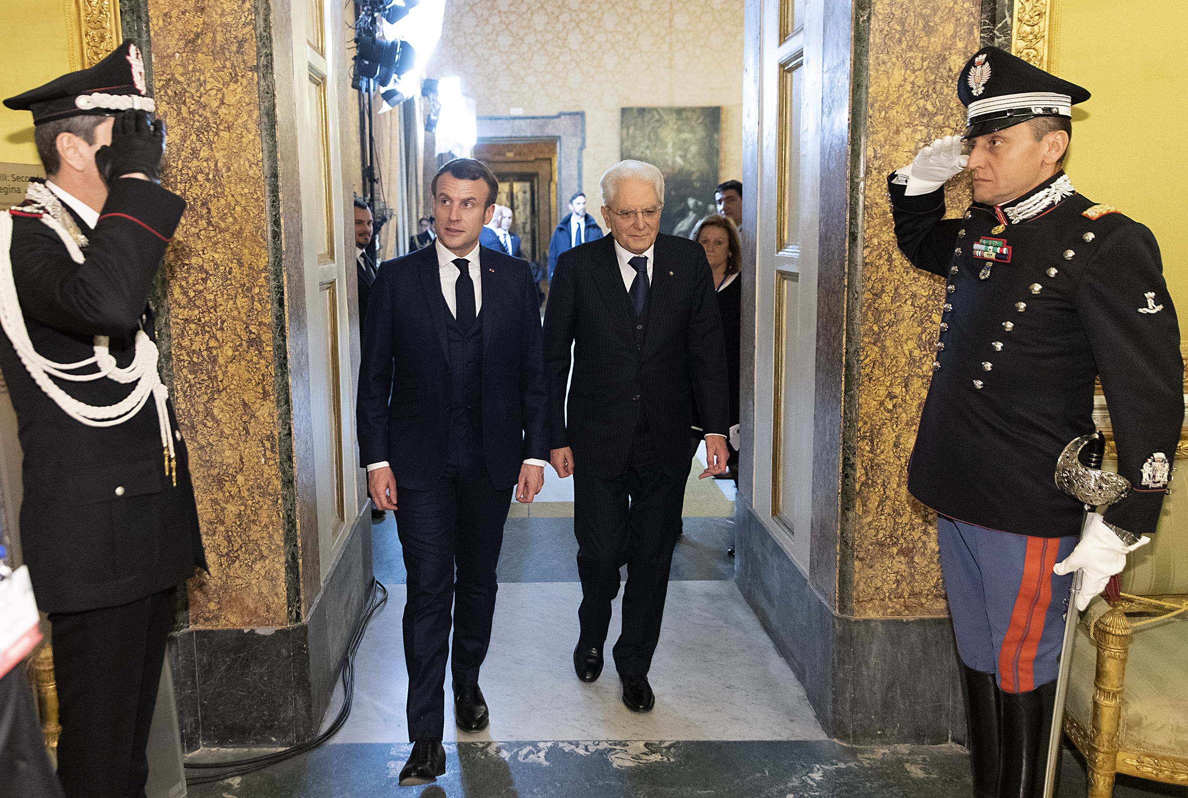 Il Presidente della Repubblica Sergio Mattarella con il Presidente della Repubblica francese Emmanuel Macron al vertice italo francese