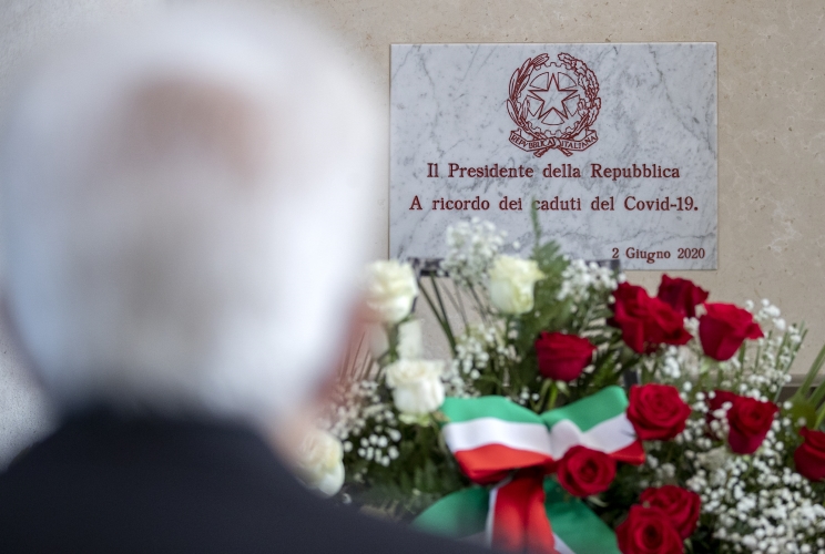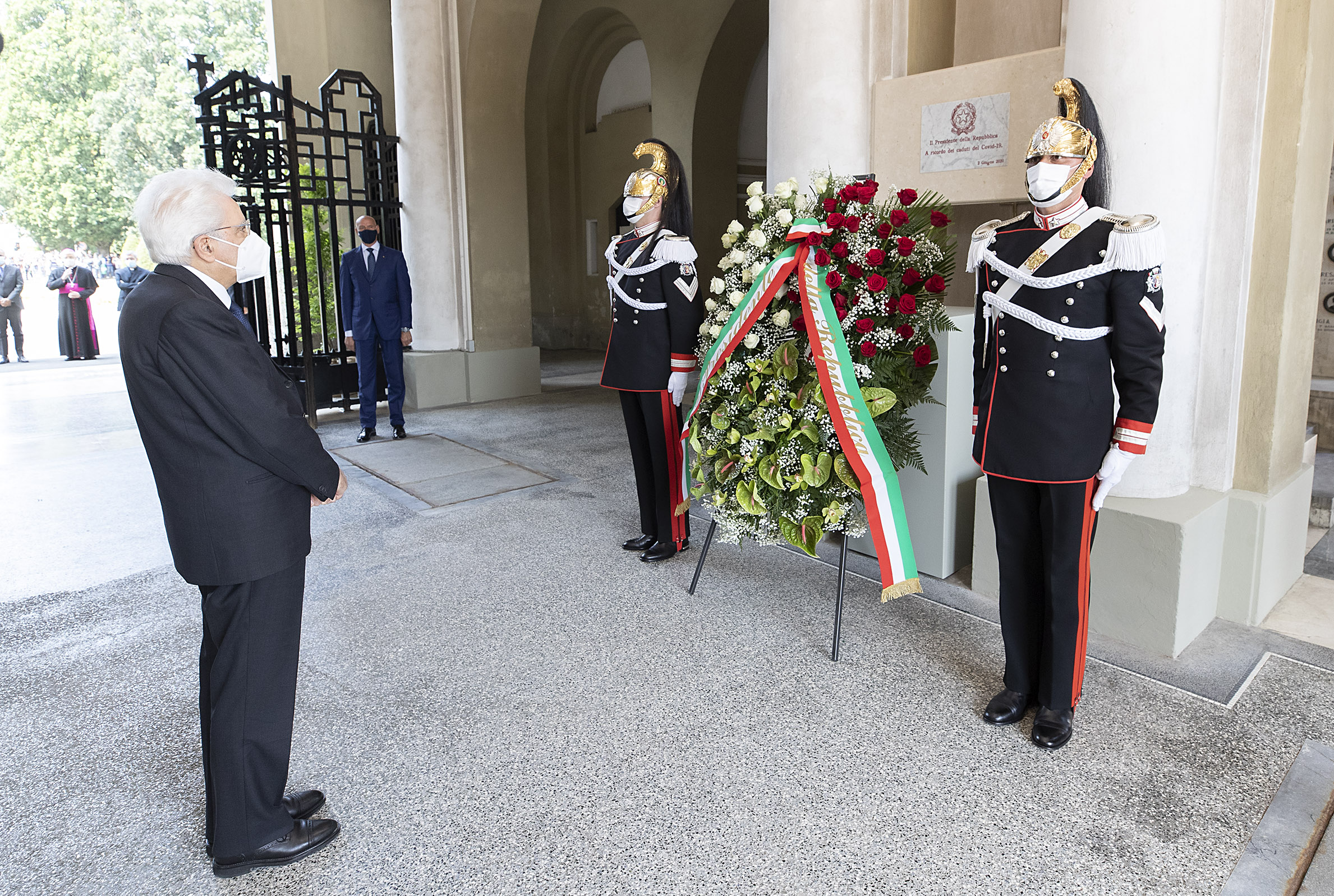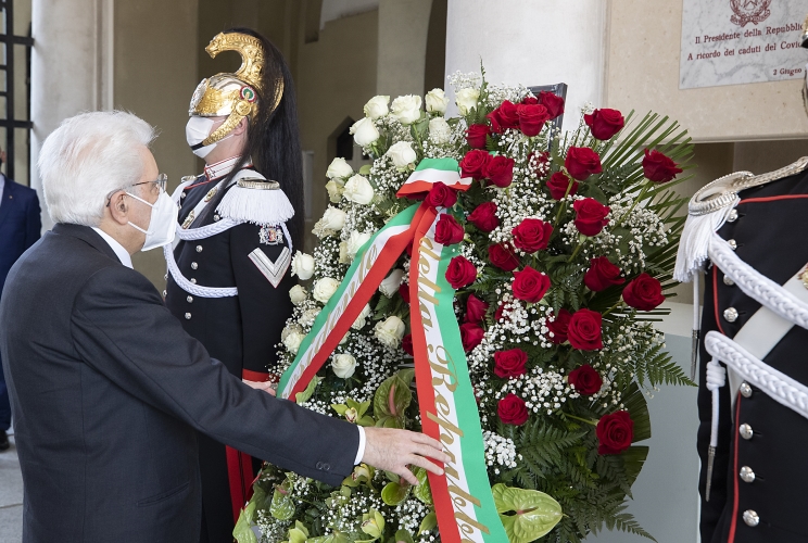 Il Presidente della Repubblica Sergio Mattarella al Cimitero di Codogno depone una corona di fiori in ricordo dei caduti per Covid 19