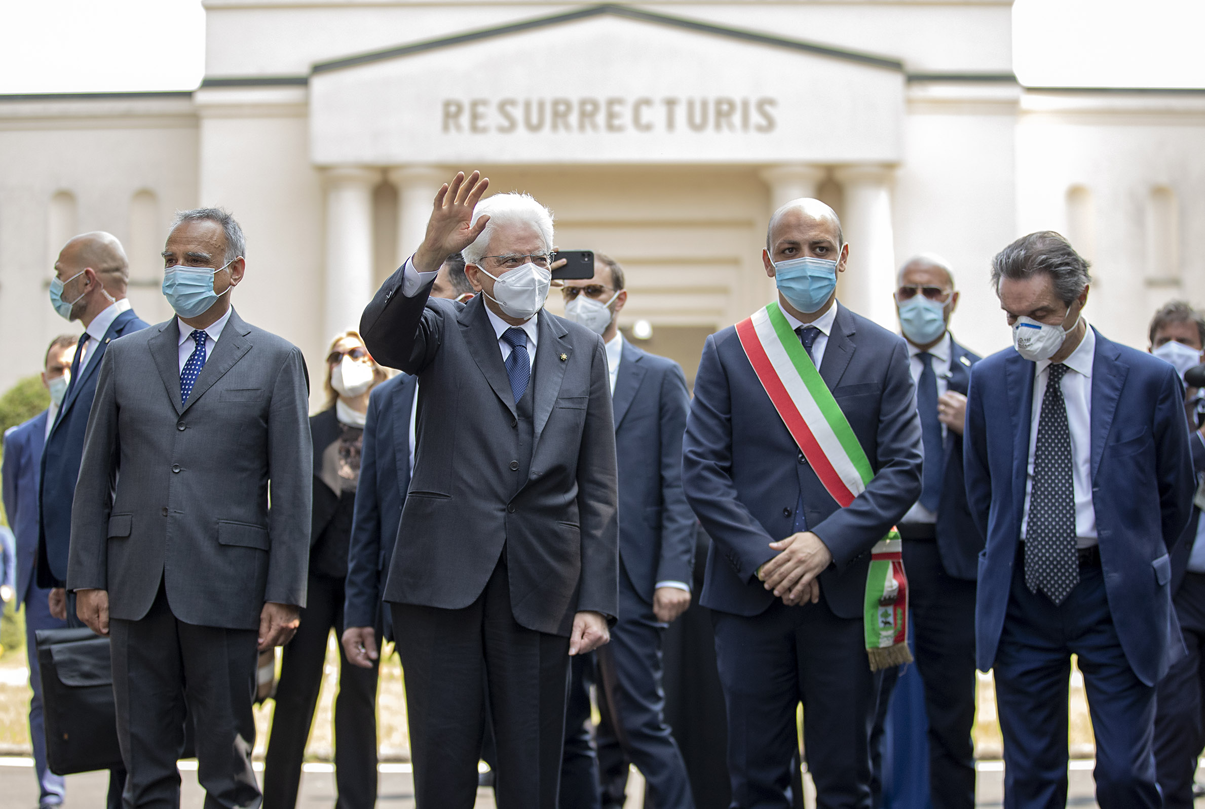 Il Presidente della Repubblica Sergio Mattarella al Cimitero di Codogno subito dopo aver deposto una corona di fiori in ricordo dei caduti per Covid 19