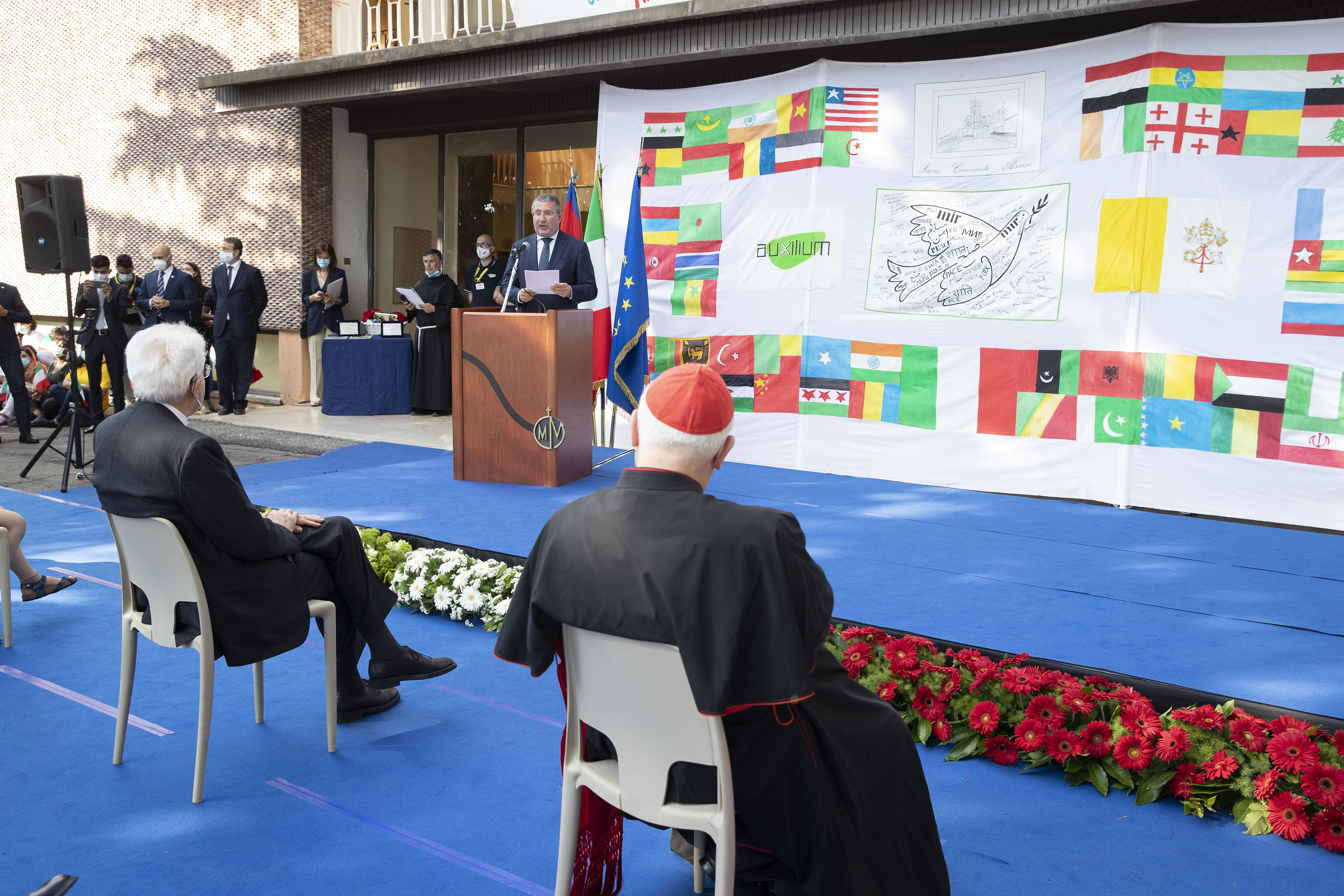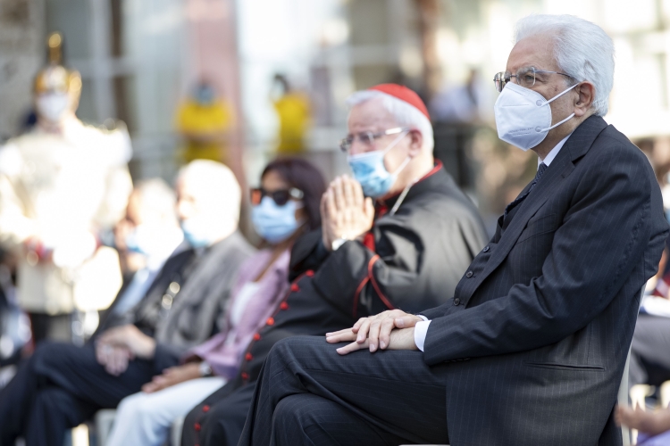 Il Presidente della Repubblica Sergio Mattarella al Centro di spiritualità e convegni “Mondo Migliore” di Rocca dei Papi, con S.E. Rev.ma il Cardinale Gualtiero Bassetti, Presidente della Conferenza Episcopale Italiana, in occasione della cerimonia di commemorazione del Sindaco del Comune di Rocca di Papa, Dott. Emanuele Crestini