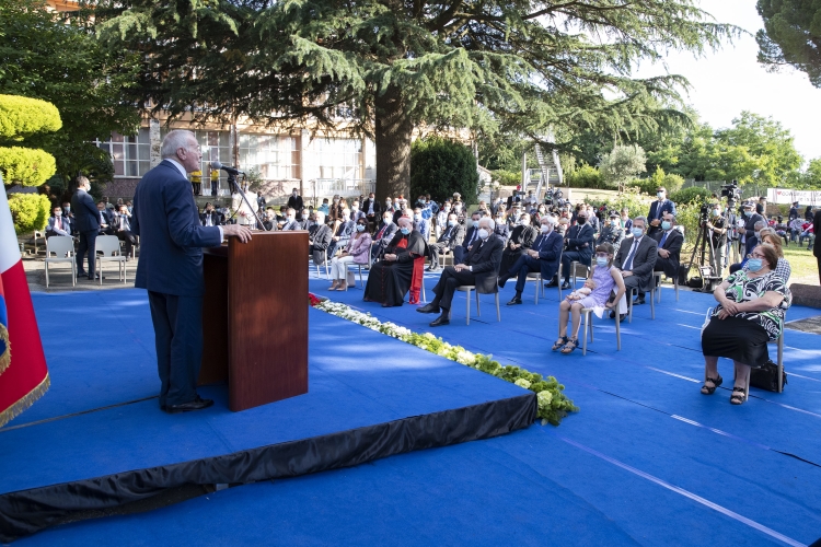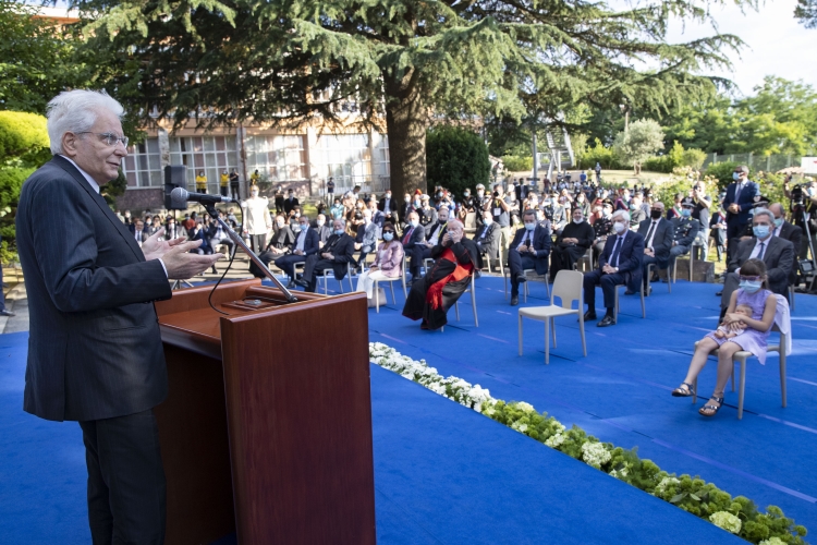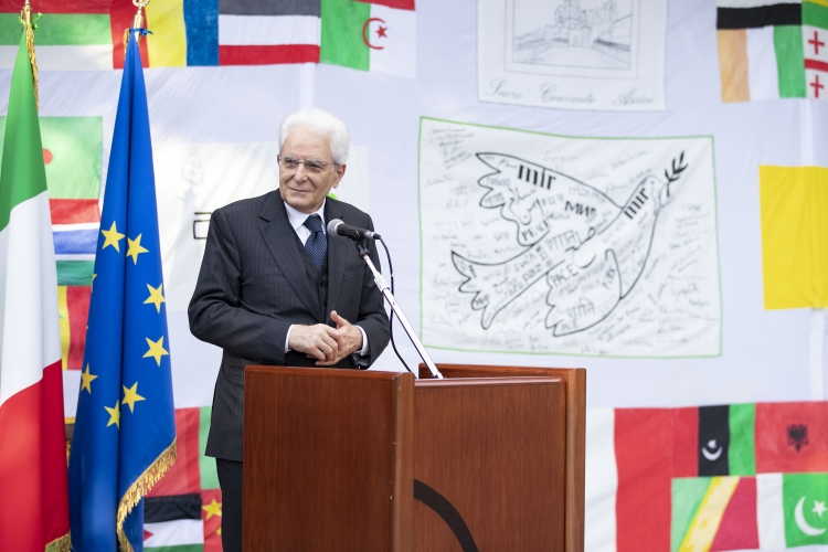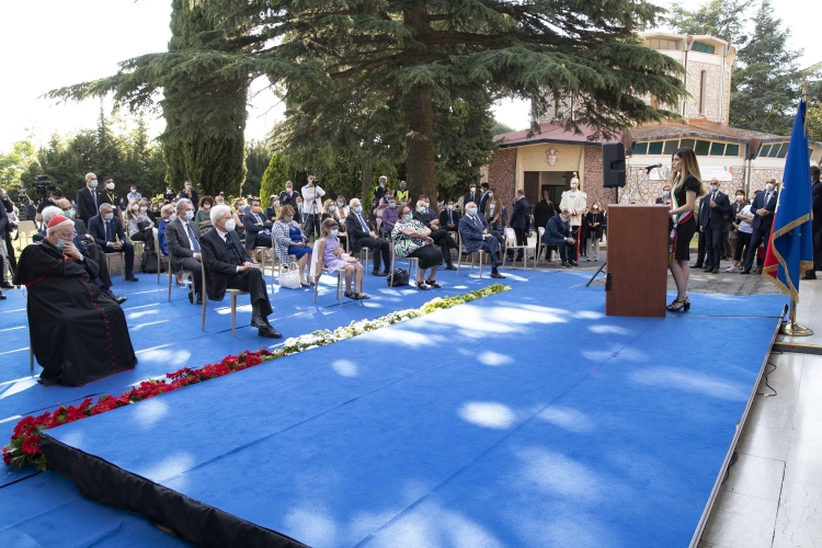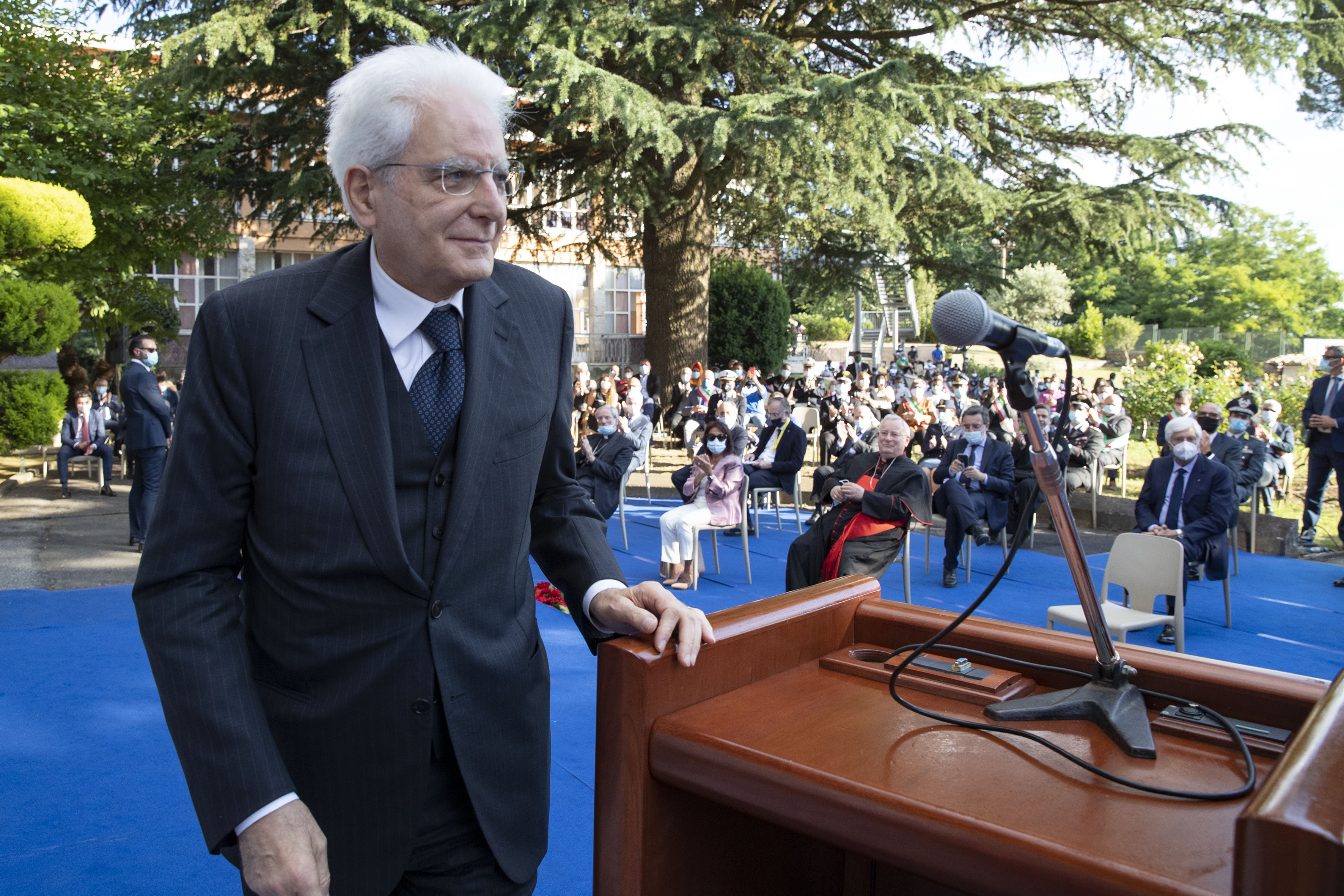 Il Presidente della Repubblica Sergio Mattarella al Centro di spiritualità e convegni “Mondo Migliore” di Rocca dei Papi, in occasione della cerimonia di commemorazione del Sindaco del Comune di Rocca di Papa, Dott. Emanuele Crestini