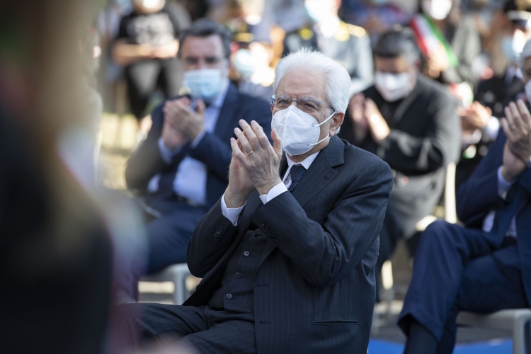 Il Presidente della Repubblica Sergio Mattarella in occasione della cerimonia di commemorazione del Sindaco del Comune di Rocca di Papa, Dott. Emanuele Crestini