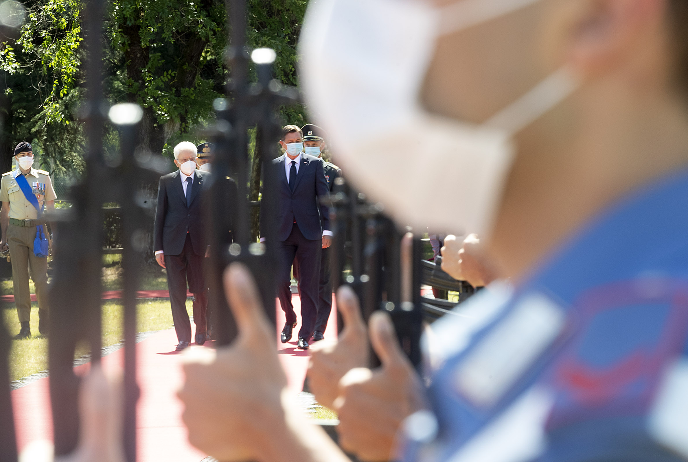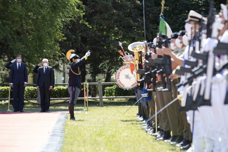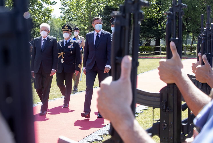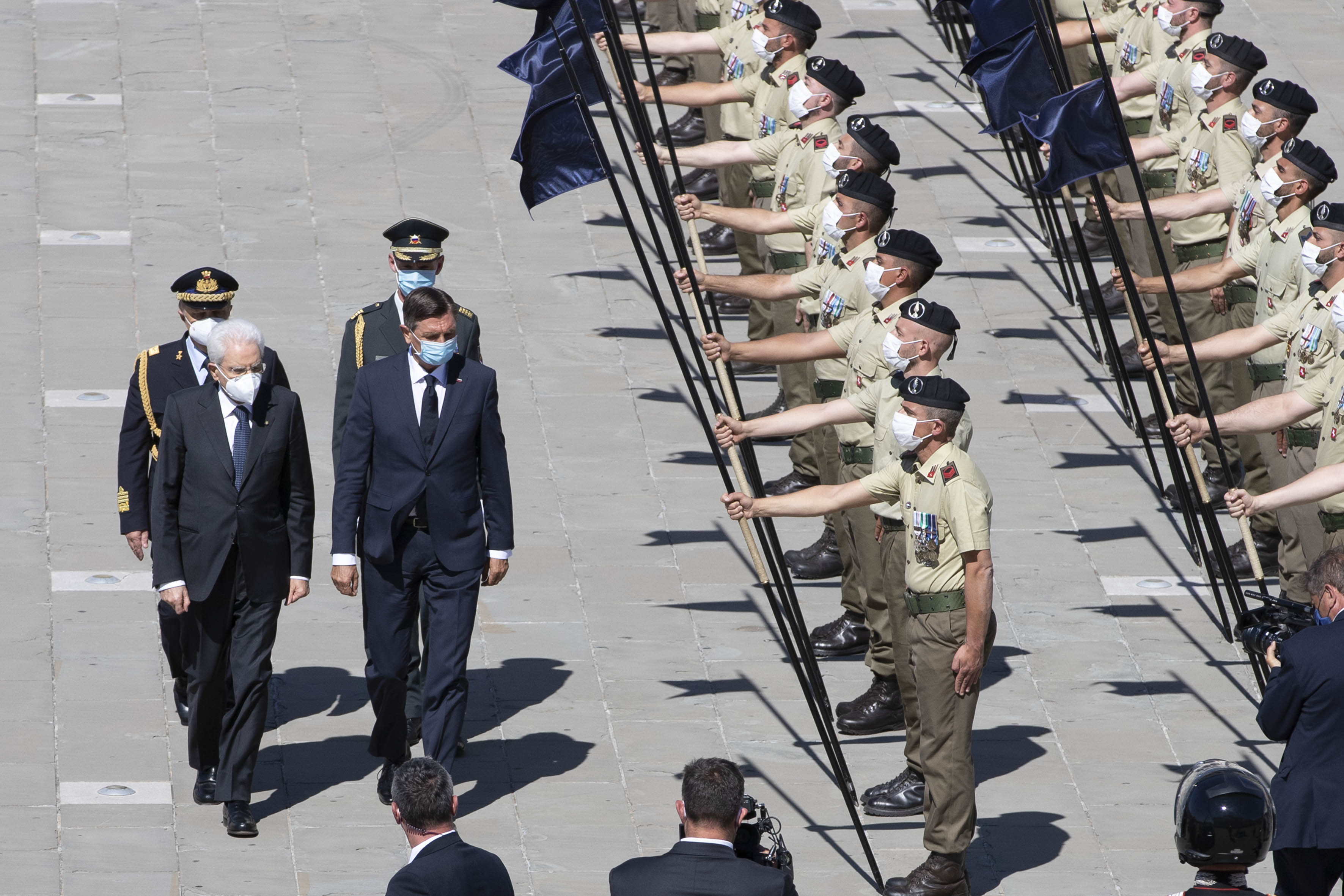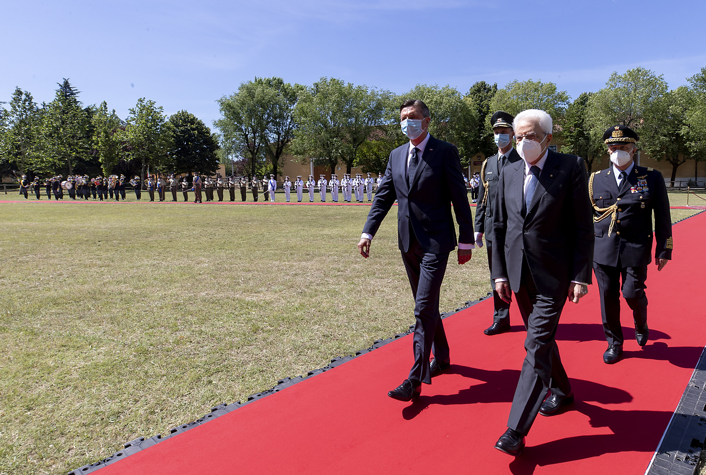 Il Presidente della Repubblica Sergio Mattarella con il Presidente della Repubblica di Slovenia, Borut Pahor durante gli onori militari