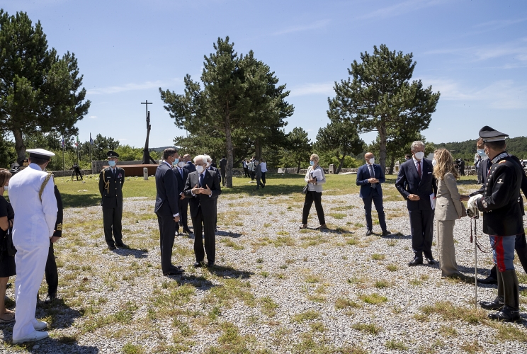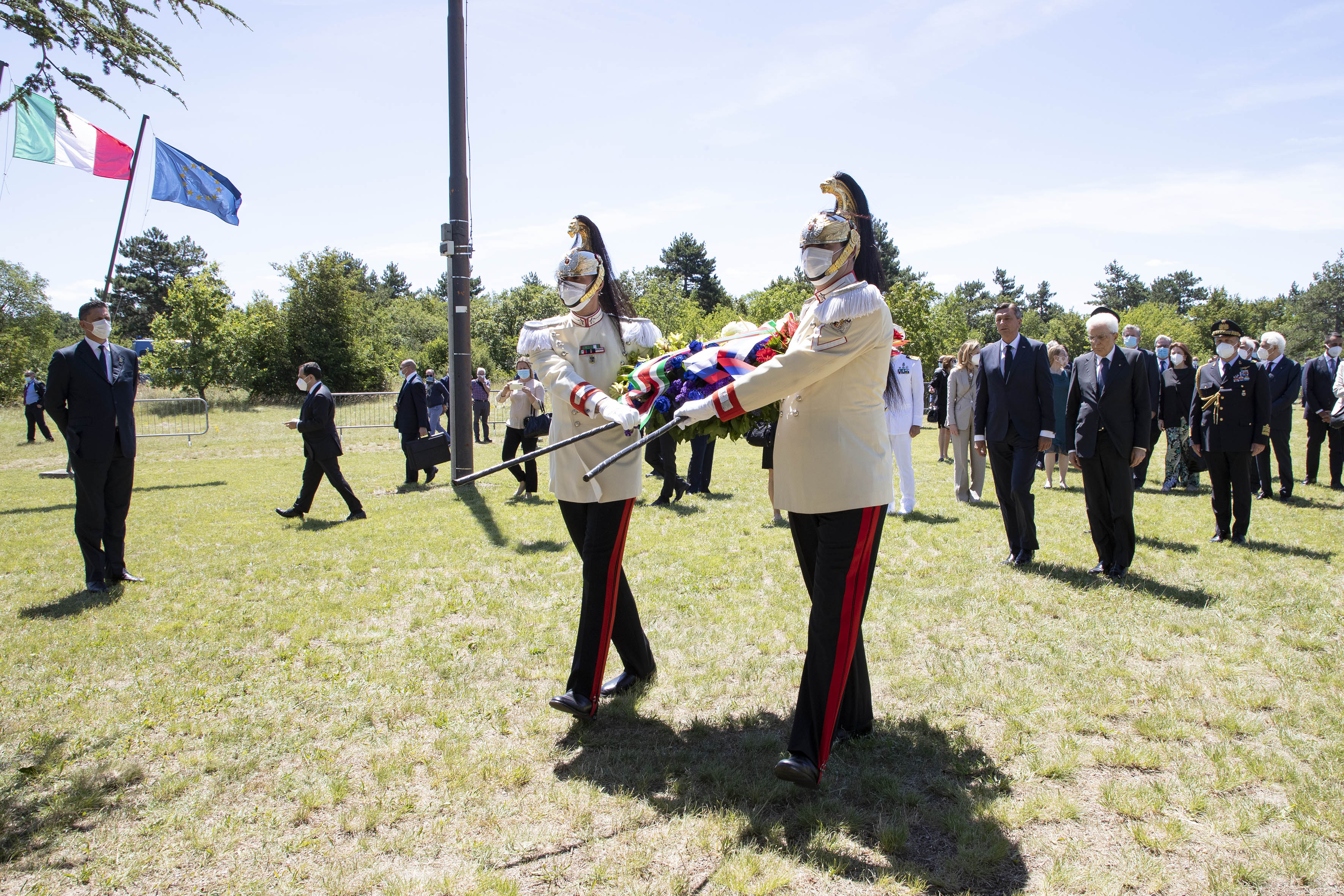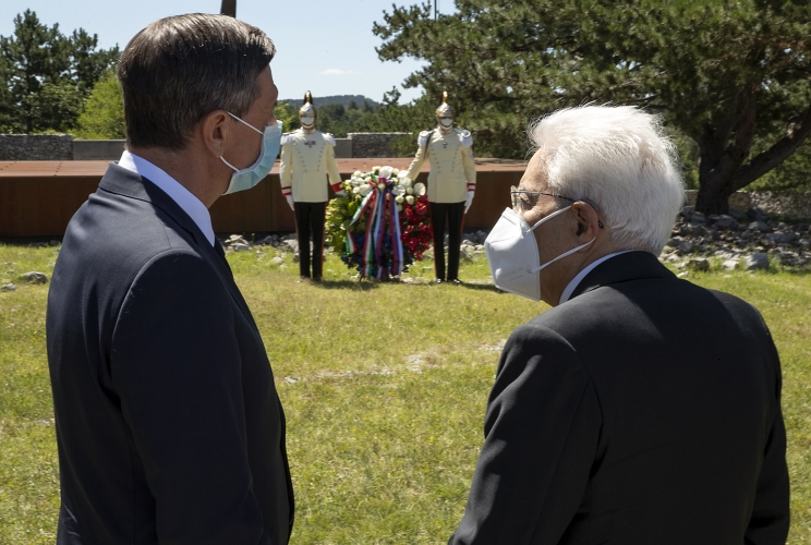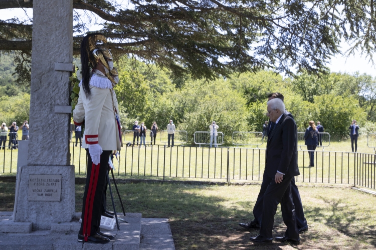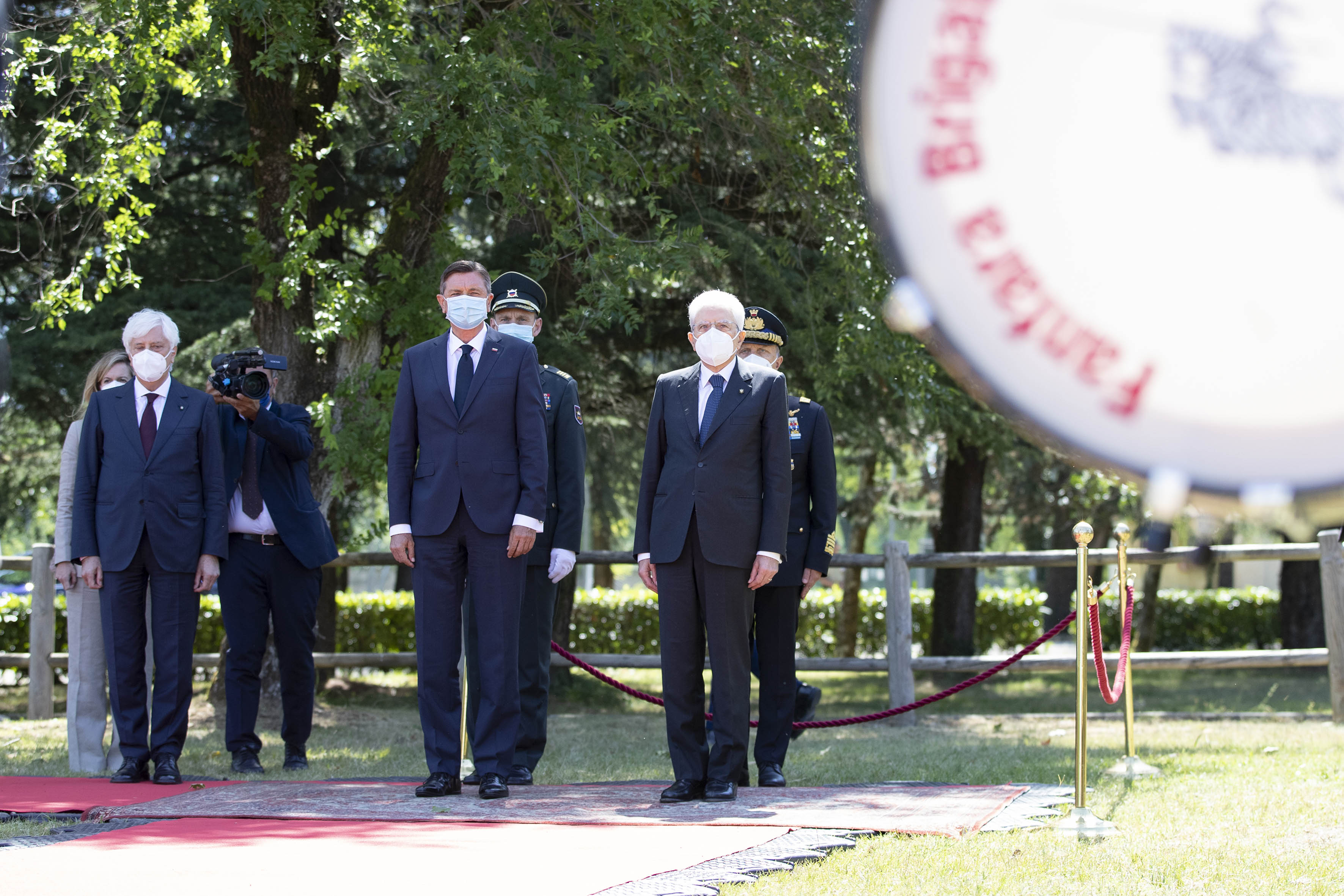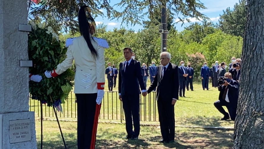 Il Presidente della Repubblica Sergio Mattarella e il Presidente della Repubblica di Slovenia, Borut Pahor depongono una corona al monumento ai caduti sloveni