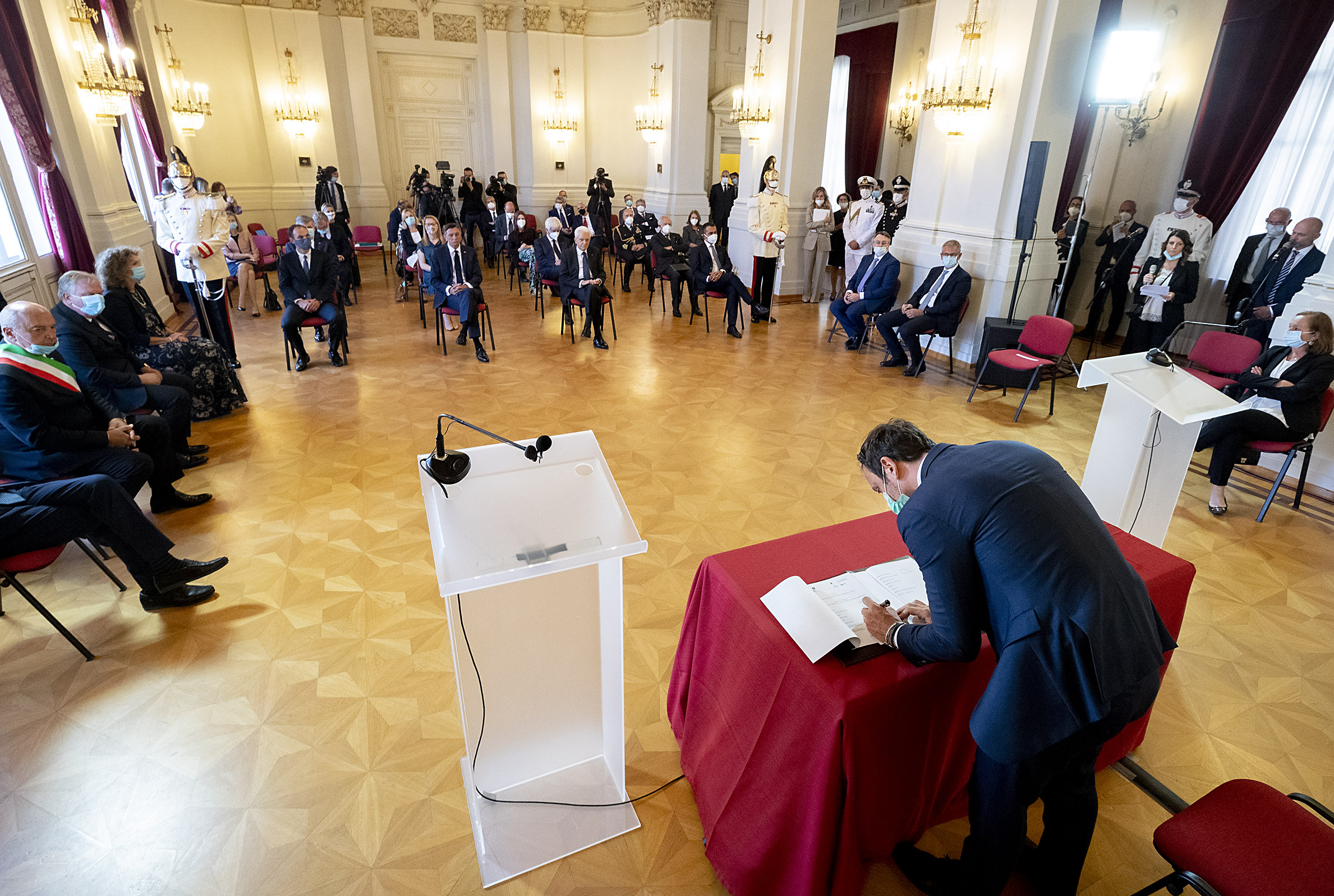 Il Presidente della Repubblica Sergio Mattarella in occasione della firma del protocollo di restituzione del Narodni Dom