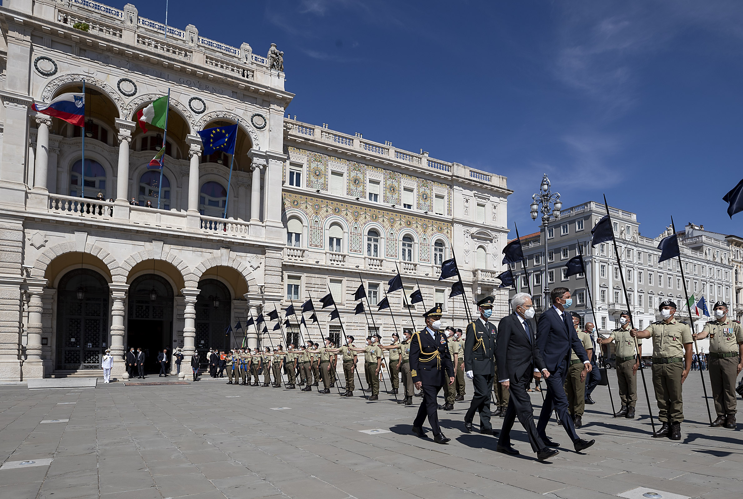 Il Presidente della Repubblica Sergio Mattarella a Trieste alla Caserma “Guido Brunner” di Villa Opicina, con Massimiliano Fedriga, Presidente della Regione Autonoma Friuli Venezia Giulia,con Roberto Dipiazza, Sindaco di Trieste e con Valerio Valenti, Prefetto di Trieste – Commissario del Governo nella Regione Friuli Venezia Giulia