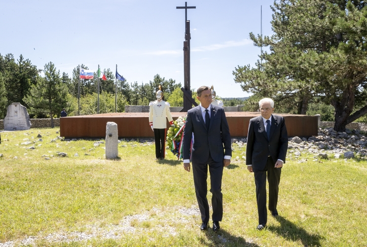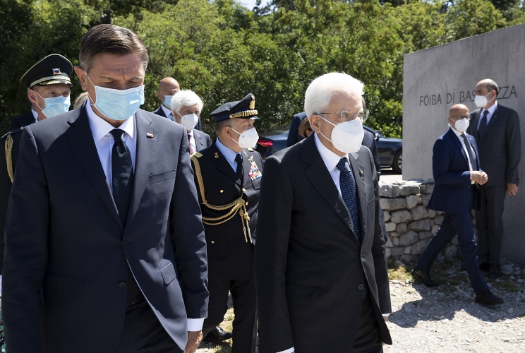 Il Presidente della Repubblica Sergio Mattarella e il Presidente della Repubblica di Slovenia Borut Pahor in occasione della deposizione di una corona di fiori presso la foiba di Basovizza