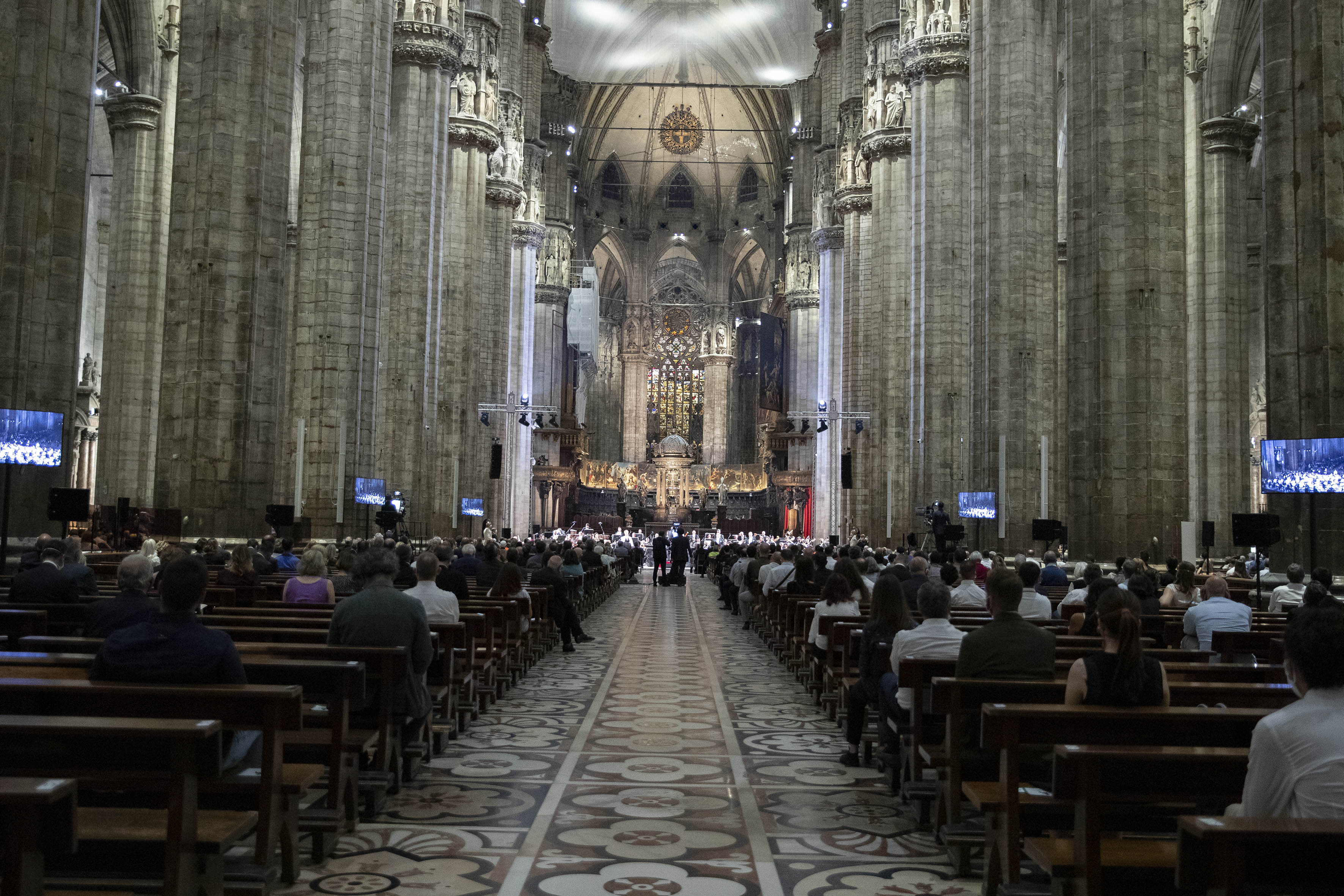 Il Presidente della Repubblica Sergio Mattarella al Duomo di Milano,in occasione della Messa da Requiem di Giuseppe Verdi,in memoria delle vittime del Covid-19