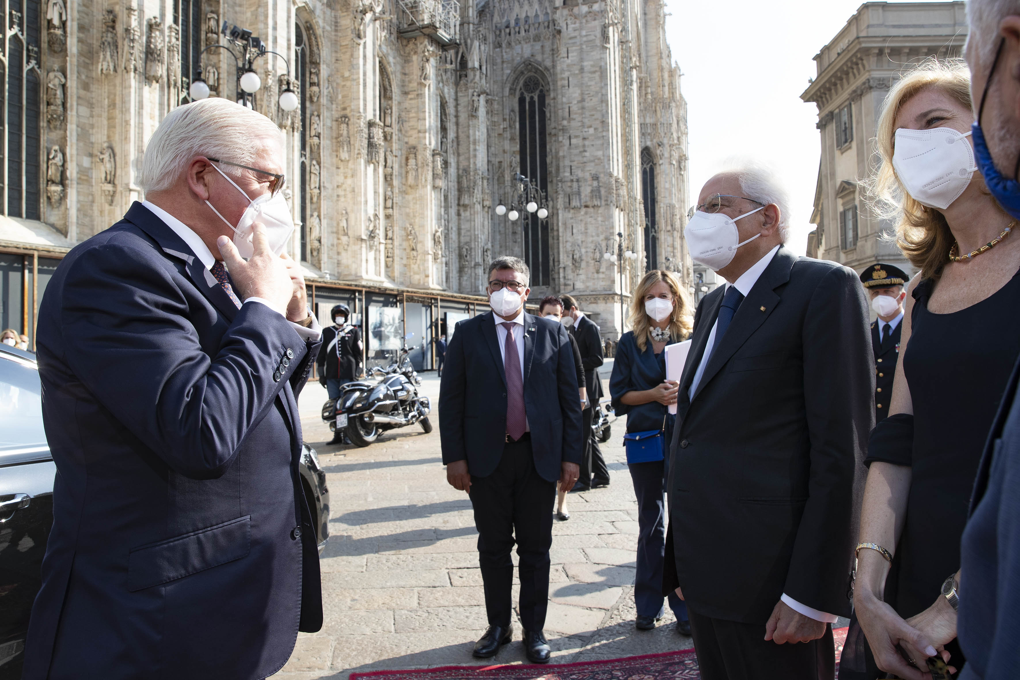 Il Presidente Sergio Mattarella e la Sig.ra Laura, in attesa del Presidente della Repubblica Federale di Germania Frank-Walter Steinmeier e la Signora Elke Büdenbender a Milano,in visita ufficiale