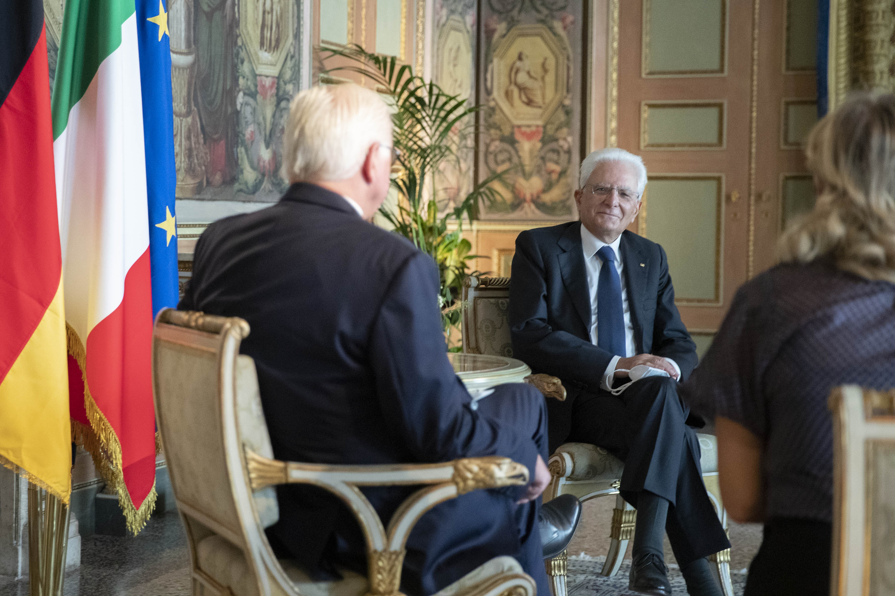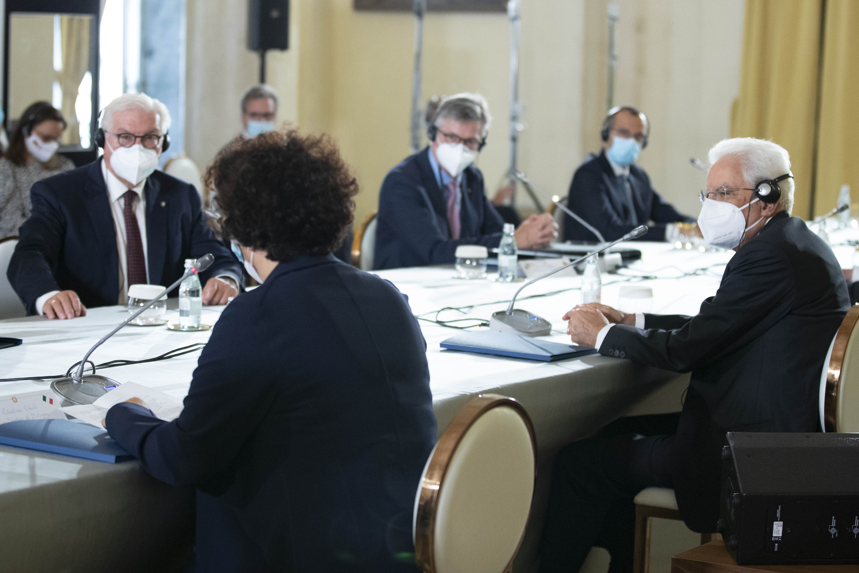 Il Presidente Sergio Mattarella e il Presidente della Repubblica Federale di Germania Frank-Walter Steinmeier durante i colloqui