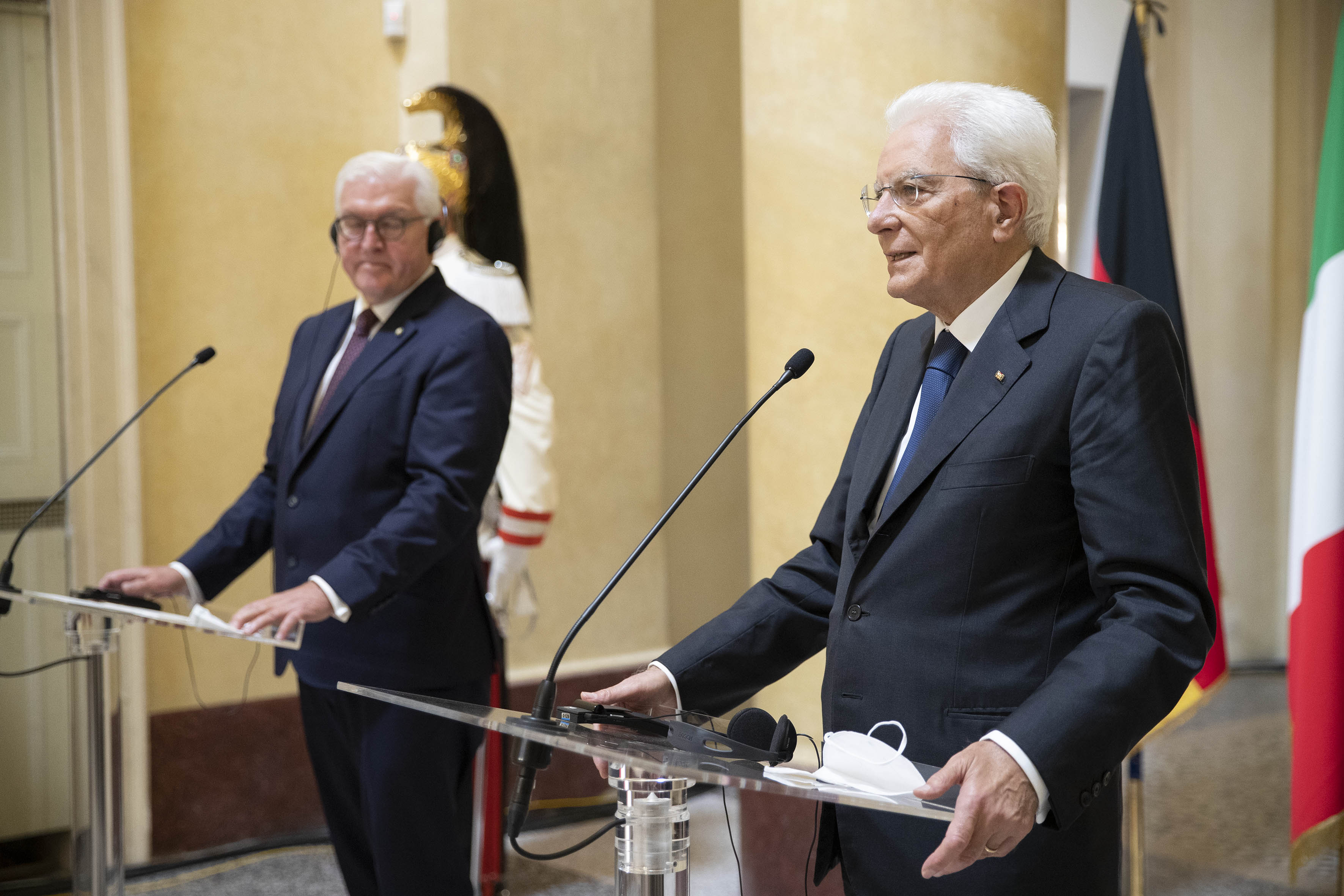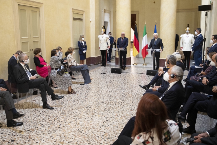 Il Presidente Sergio Mattarella e il Presidente della Repubblica Federale di Germania Frank-Walter Steinmeier, durante le dichiarazioni alla stampa, in occasione della visita ufficiale