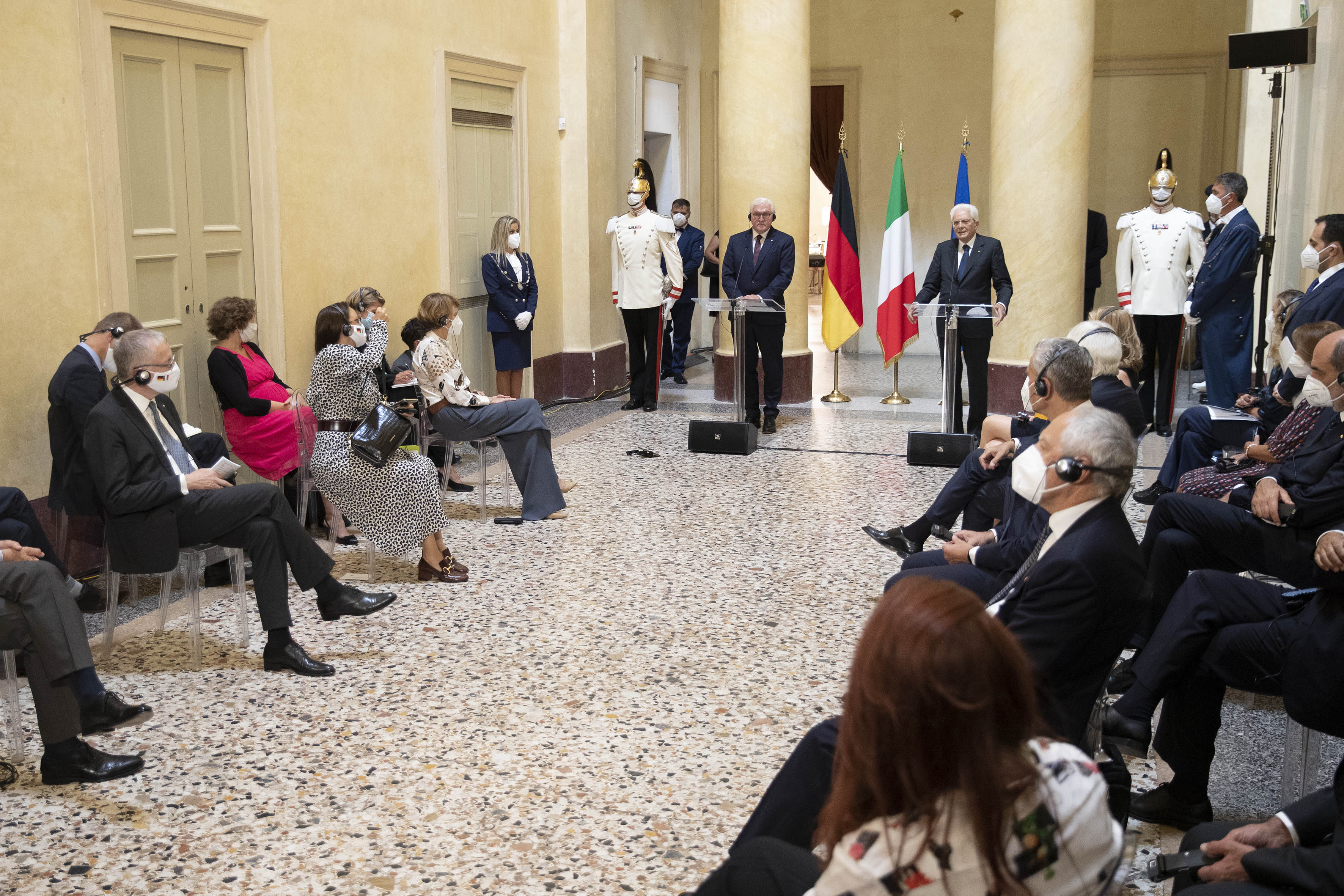 Il Presidente Sergio Mattarella e il Presidente della Repubblica Federale di Germania Frank-Walter Steinmeier a palazzo Reale