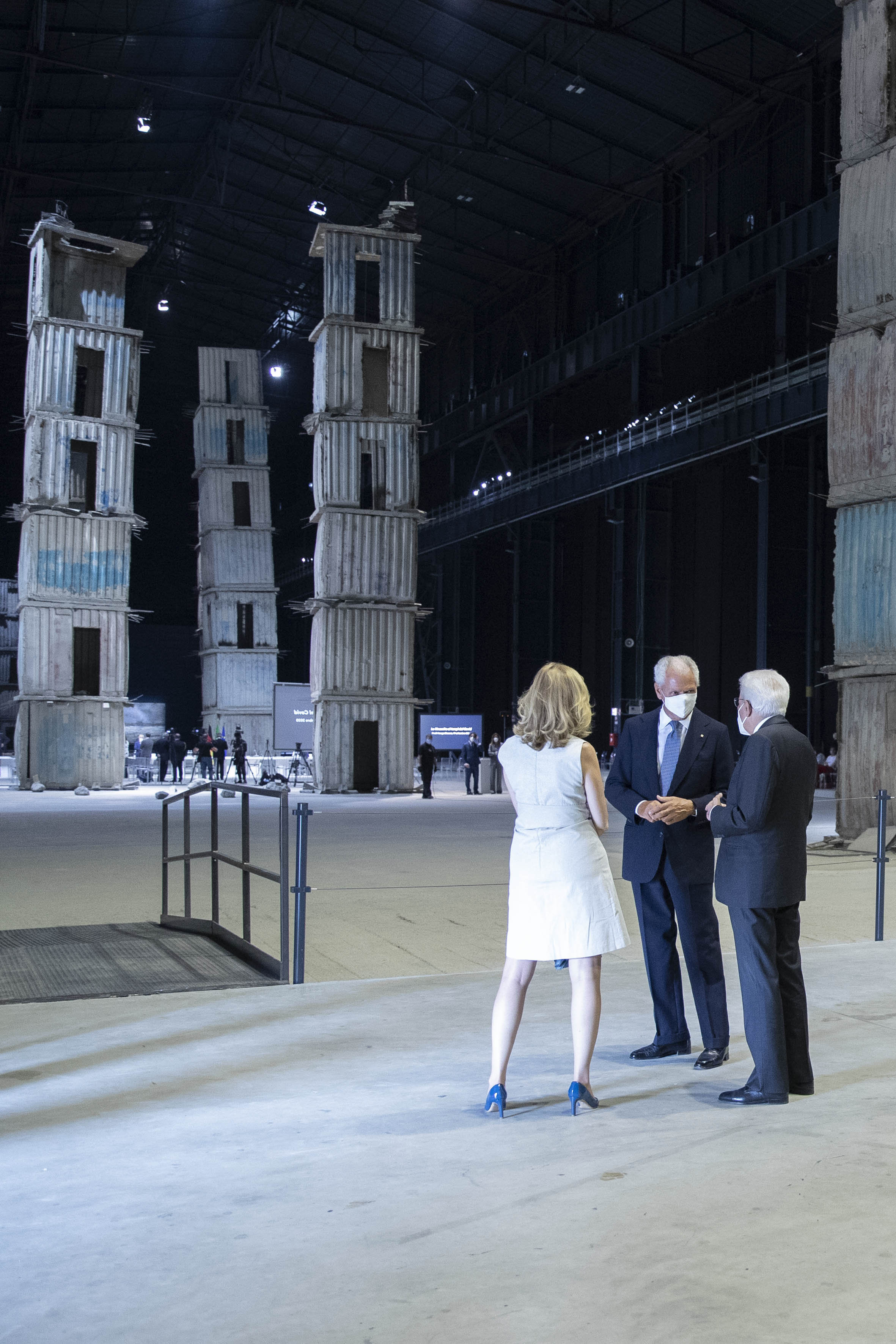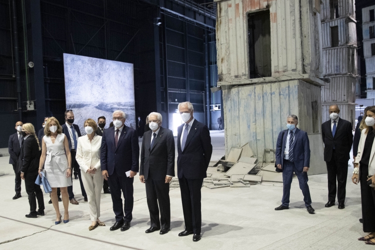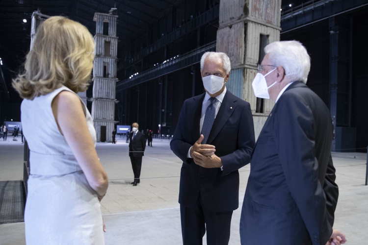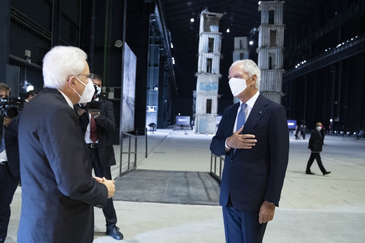 Il Presidente Sergio Mattarella, in Pirelli HangarBicocca, con Marco Tronchetti Provera, Presidente della Fondazione Pirelli per il panel di studio dal titolo “La rinascita al tempo del Covid”